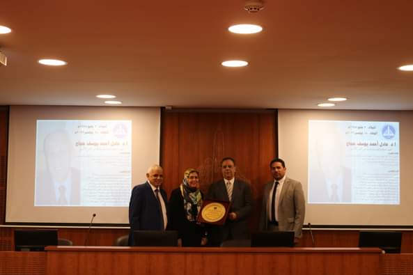 وتداولت كلمات الرثاء من الجميع والمواقف التي جمعت المتحدثين مع المرحوم ، وفى النهاية تسلمت زوجة السيد الأستاذ الدكتور / عادل حجاج – درع مقدم من إدارة الكلية تقديراً وعرفاناً وبحضورنجل سيادته .