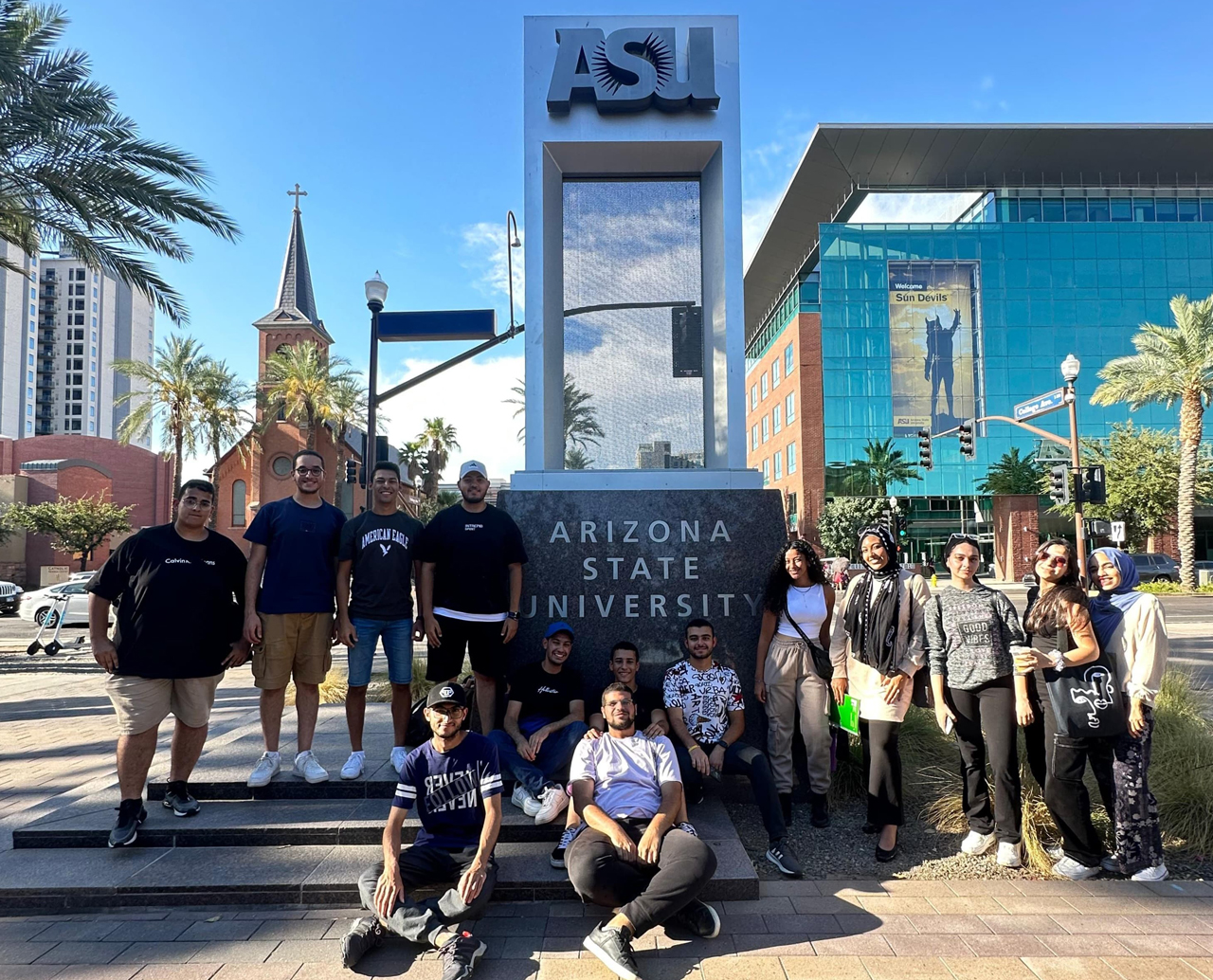 A group of Interdisciplinary students affiliated with the Energy and Renewable Energy program of the Bachelor of Engineering Faculty of Ain Shams University are currently joining the fall 2023 semester for five months at Arizona State University in the USA. This is part of the Student Exchange Program of the Center of Excellence for Energy (COE), funded by the United States Agency for International Development (USAID). The Center of Energy Excellence aims to drive the transition of energy diversity in Egypt to help the country achieve its target of 42% renewable energy by 2035, drive energy innovation, competition, and modernization, as well as address various challenges.