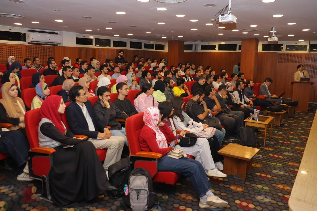 وذلك فى حضور عديد من طلاب قسم هندسة الحاسبات والنظم وقسم هندسة الالكترونيات والاتصالات الكهربية وأعضاء هيئة التدريس بالقسمين وكذلك ضيوف من أعضاء منIEEE Solid-State Circuits Society (SSCS) Egypt Chapter من الجامعات مصرية.