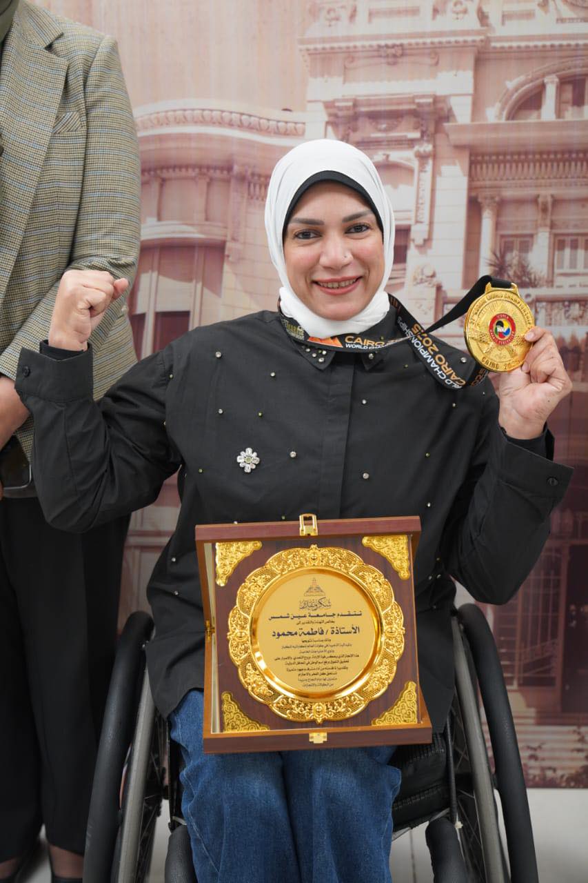 و فاطمة محمود (كلية التربية) حققت إنجازًا تاريخيًا كأول لاعبة في مصر والوطن العربي تحصد ذهبية بطولة العالم للكاراتيه الحركي – بنات، خلال البطولة التي استضافتها مصر في 29 نوفمبر 2025.