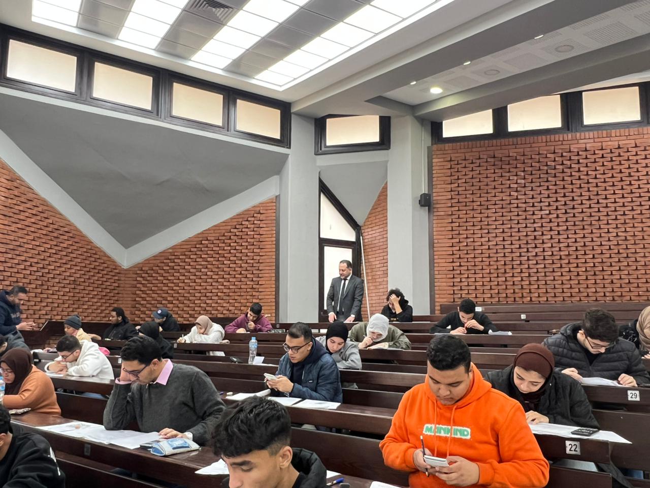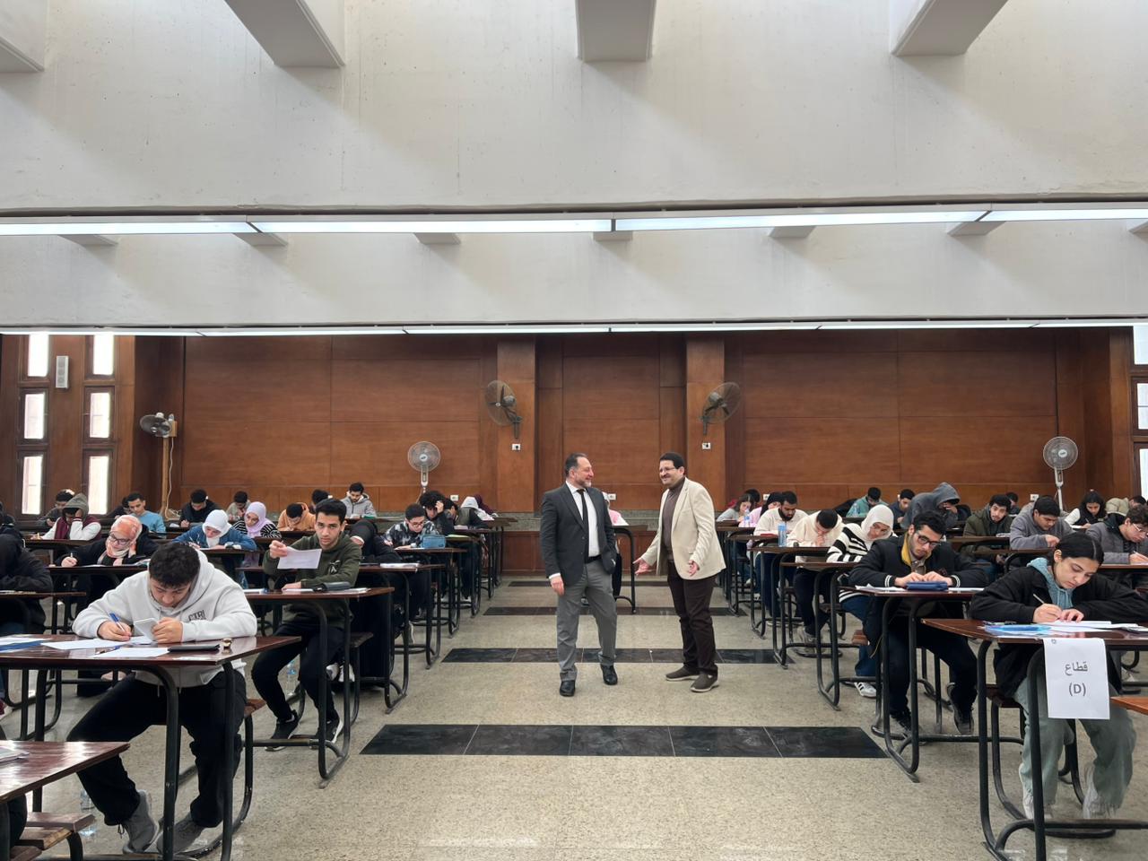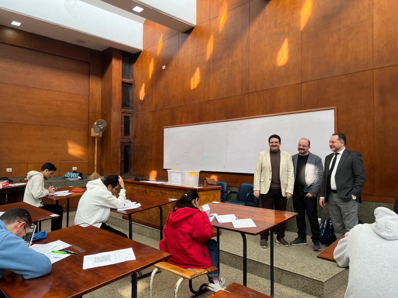 Under the patronage of Prof. Dr. Amr Shaat, Dean of the Faculty of Engineering, Ain Shams University; Prof. Dr. Mohamed Abdelaziz, Vice Dean for Education and Student Affairs; and Prof. Dr. Amr Othman, Examinations Administration Coordinator, and in cooperation with the various departments and units of the Faculty, undergraduate students in both specialized and interdisciplinary programs at the Faculty of Engineering, Ain Shams University, continue to sit for the Fall 2025 examinations, which commenced on Monday, December 29, 2025. The examination committees have been organized to ensure the smooth conduct of the examination process, with exams held in two daily sessions throughout the week, in full compliance with the procedures regulating students’ entry. During an inspection tour of several examination halls across the faculty, officials reviewed the committees, ensured the proper implementation of all regulations, and confirmed the smooth progress of the examinations. They also verified the availability of a suitable and comfortable environment for students, as well as the readiness of medical teams to handle any emergencies. At the conclusion of the tour, best wishes for success were extended to all students.