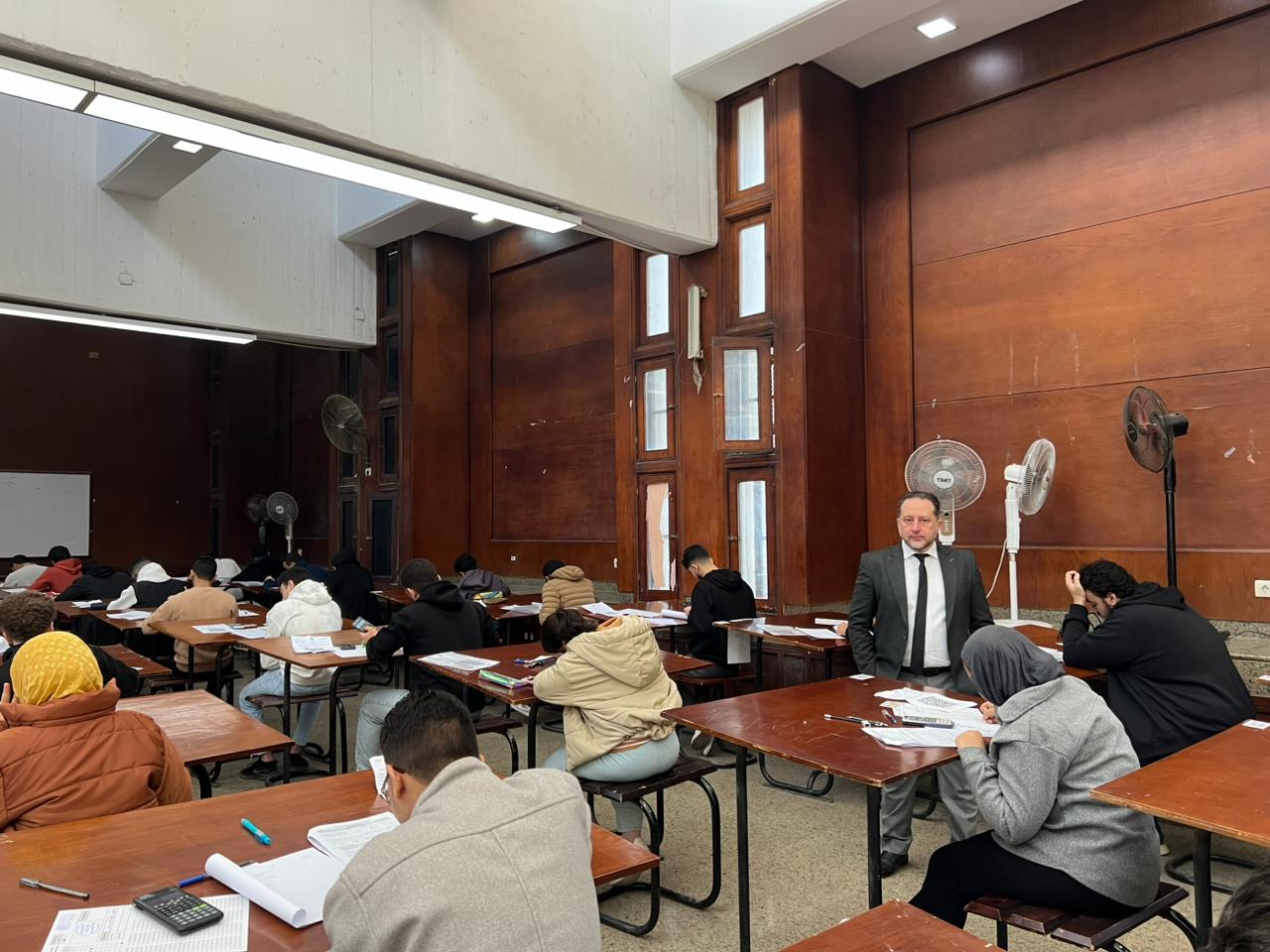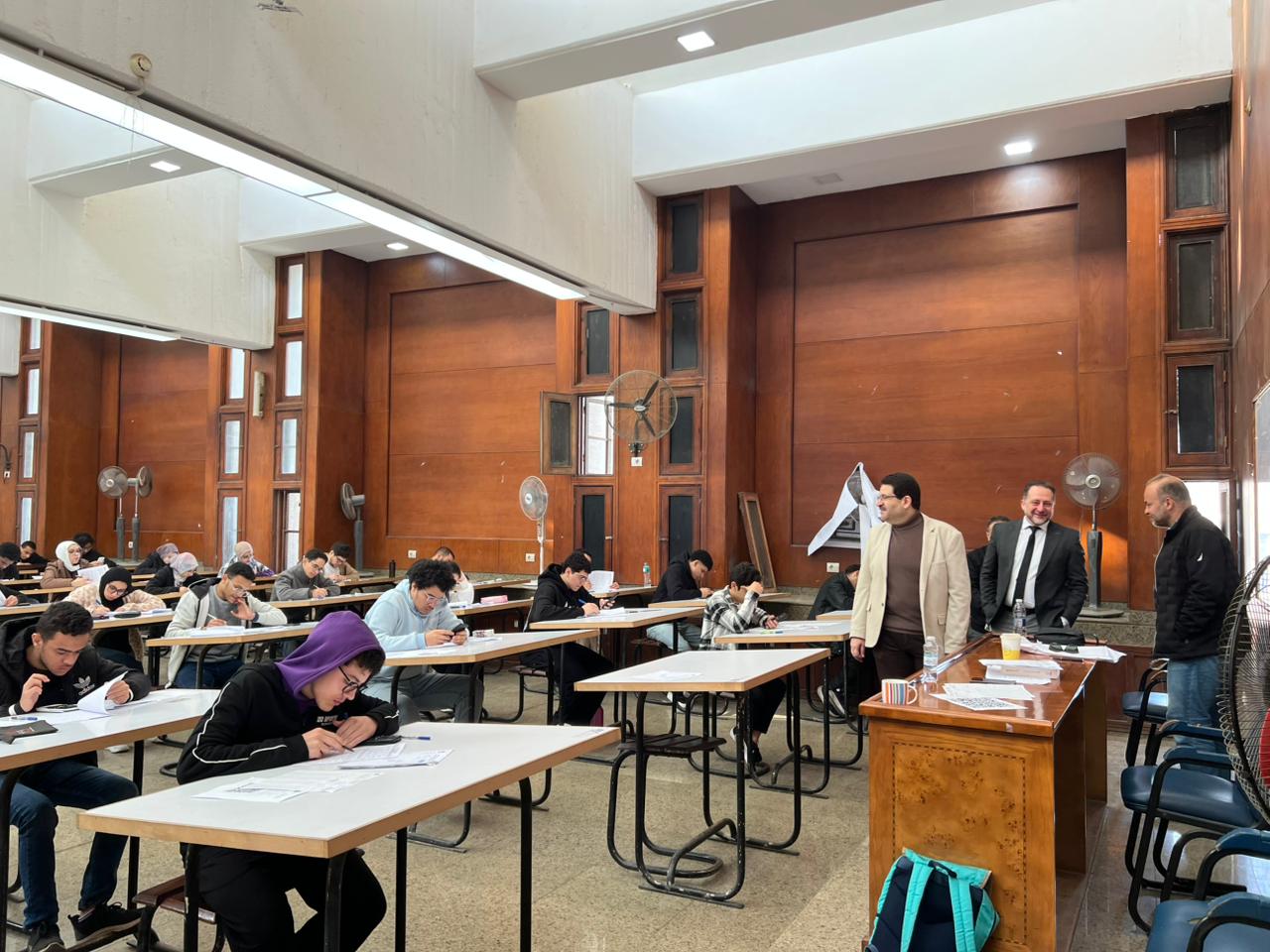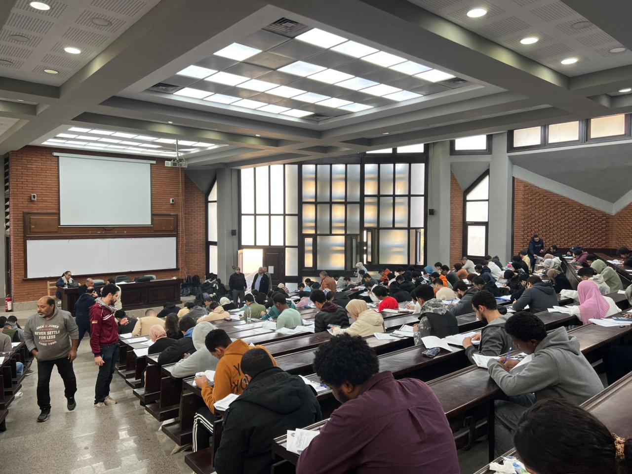 Under the patronage of Prof. Dr. Amr Shaat, Dean of the Faculty of Engineering, Ain Shams University; Prof. Dr. Mohamed Abdelaziz, Vice Dean for Education and Student Affairs; and Prof. Dr. Amr Othman, Examinations Administration Coordinator, and in cooperation with the various departments and units of the Faculty, undergraduate students in both specialized and interdisciplinary programs at the Faculty of Engineering, Ain Shams University, continue to sit for the Fall 2025 examinations, which commenced on Monday, December 29, 2025. The examination committees have been organized to ensure the smooth conduct of the examination process, with exams held in two daily sessions throughout the week, in full compliance with the procedures regulating students’ entry. During an inspection tour of several examination halls across the faculty, officials reviewed the committees, ensured the proper implementation of all regulations, and confirmed the smooth progress of the examinations. They also verified the availability of a suitable and comfortable environment for students, as well as the readiness of medical teams to handle any emergencies. At the conclusion of the tour, best wishes for success were extended to all students.