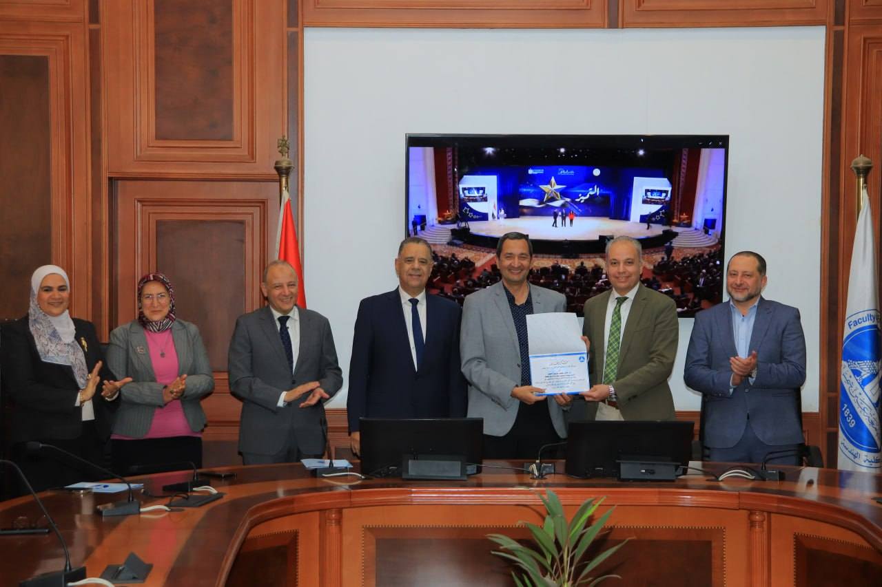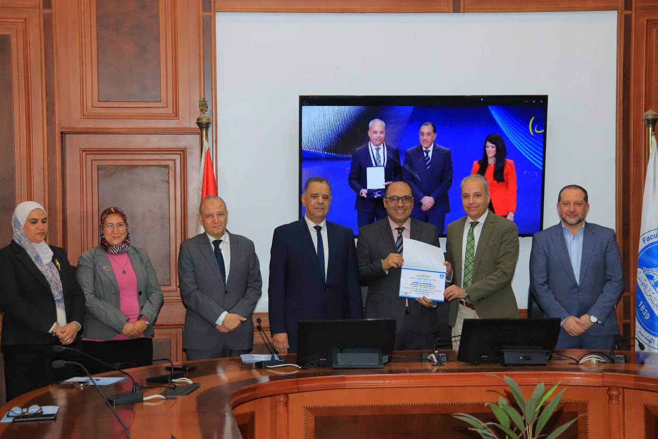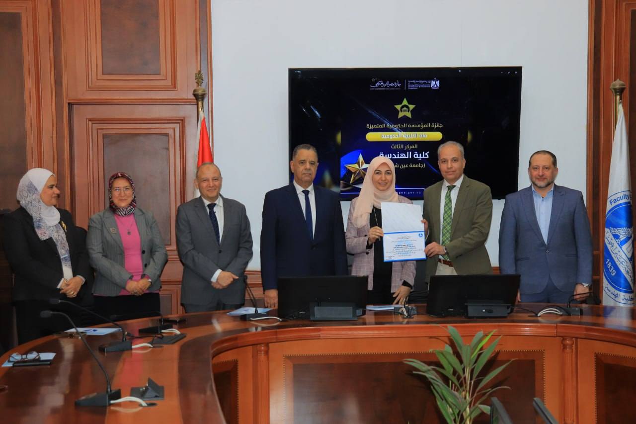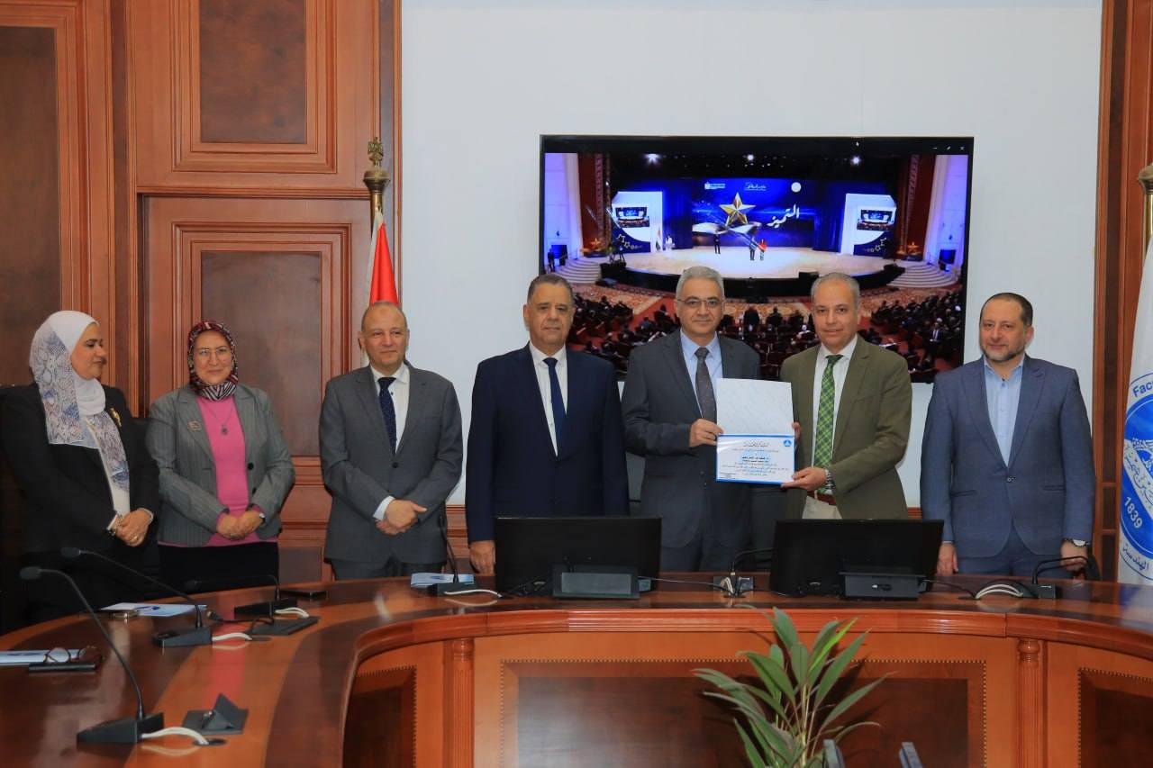 تكريم فريق العمل بكلية الهندسة بعد الفوز بالمركز الثالث في جائزة مصر للتميز الحكومي (الدورة الرابعة)