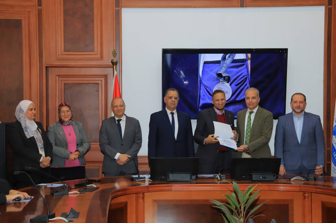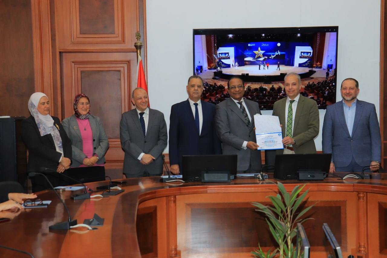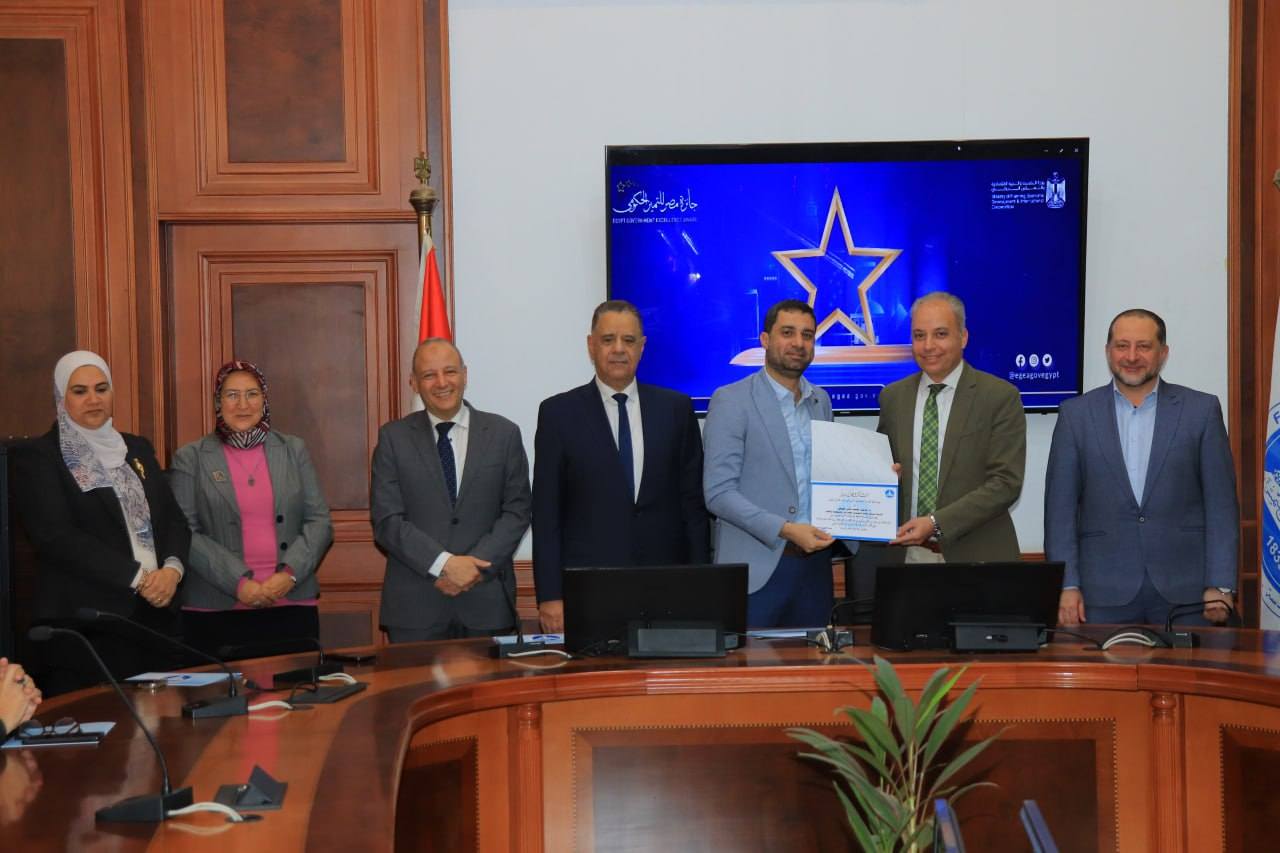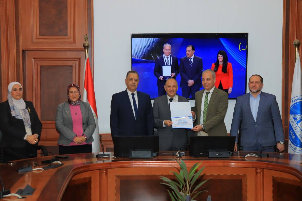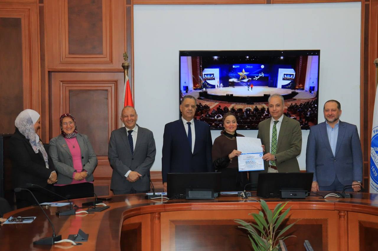 تكريم فريق العمل بكلية الهندسة بعد الفوز بالمركز الثالث في جائزة مصر للتميز الحكومي (الدورة الرابعة)