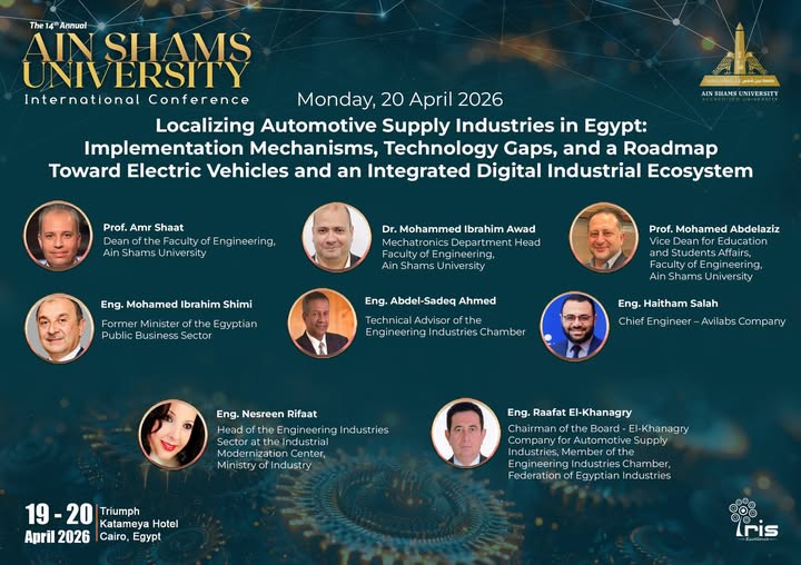 في ضوء فعاليات المؤتمر الدولي لجامعة عين شمس الرابع عشر بعنوان: (الجامعات قاطرات للتنمية الوطنية ... نحو الابتكار والنمو الاقتصادي المستدام) وذلك خلال يومي 19 و 20 إبريل 2026م بفندق تريومف القطامية بالقاهرة الجديدة تتولى كلية الهندسة تنظيم جلسة علمية وذلك يوم الإثنين الموافق 20 أبريل 2026 في تمام العاشرة صباحا بعنوان: