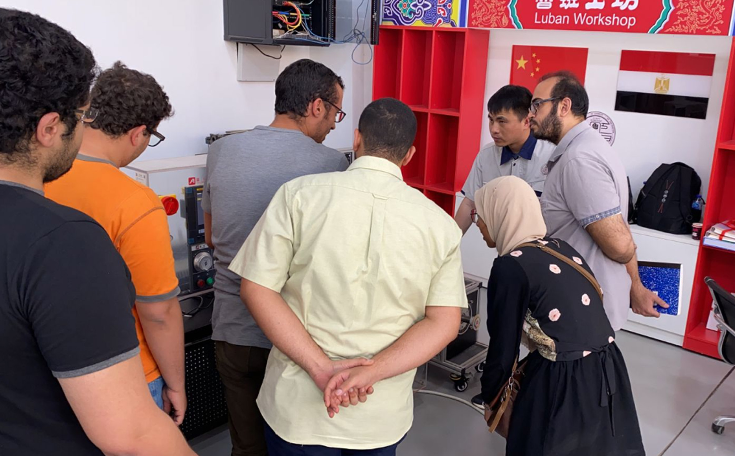 بتدريب مجموعة من السادة أعضاء الهيئة المعاونة بقسم التصميم وهندسة الإنتاج على صيانة ماكينات التحكم العددي (CNC) بورش لوبان، وذلك بهدف رفع قدراتهم ونقل الخبرة لمزيد من الكوادر.