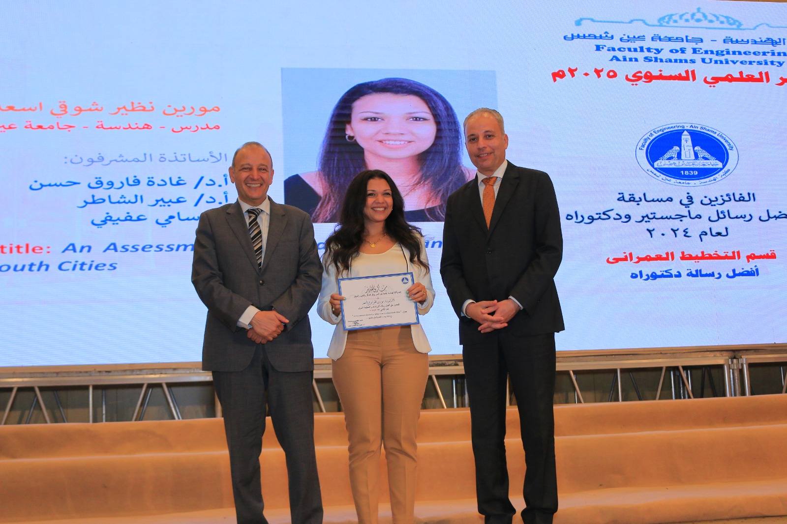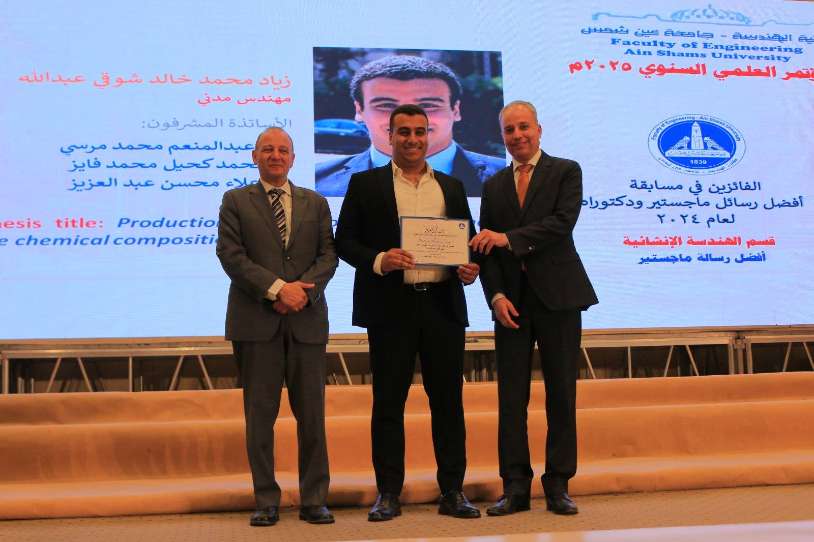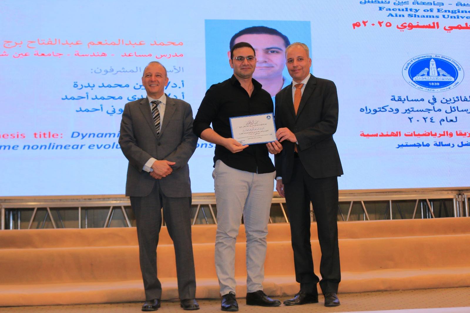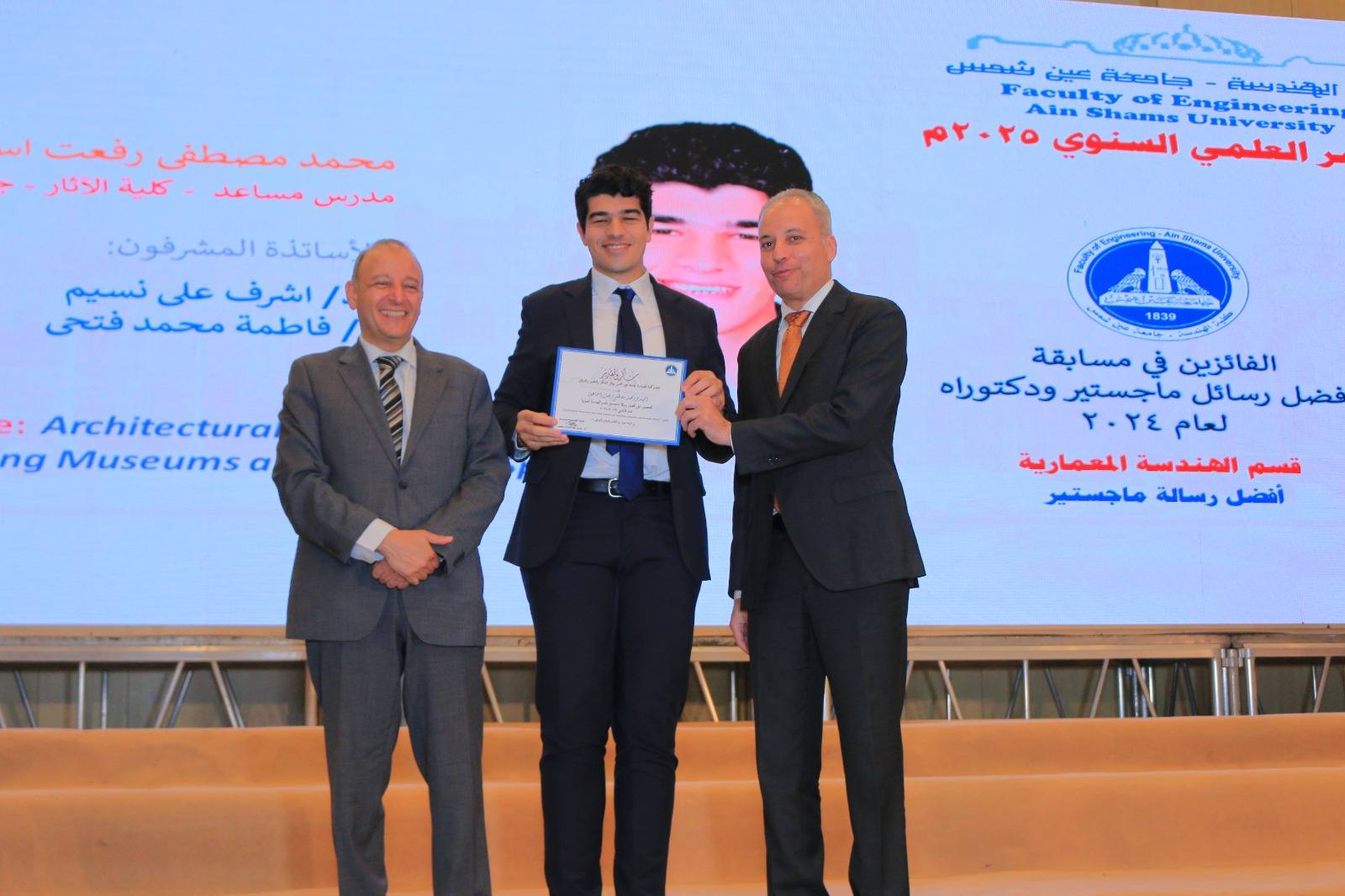 في أجواء من الاعتزاز والفخر شهدت كلية الهندسة – جامعة عين شمس تكريم الفائزين في مسابقة أفضل رسائل علمية (ماجستير – دكتوراه) للعام الجامعي 2023-2024 ، وذلك ضمن فعاليات المؤتمر العلمي السنوي للكلية.