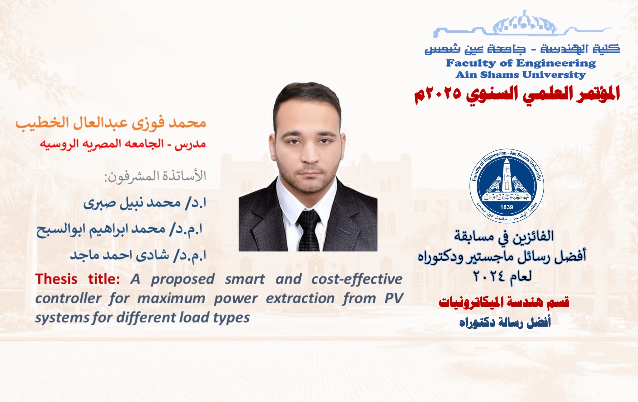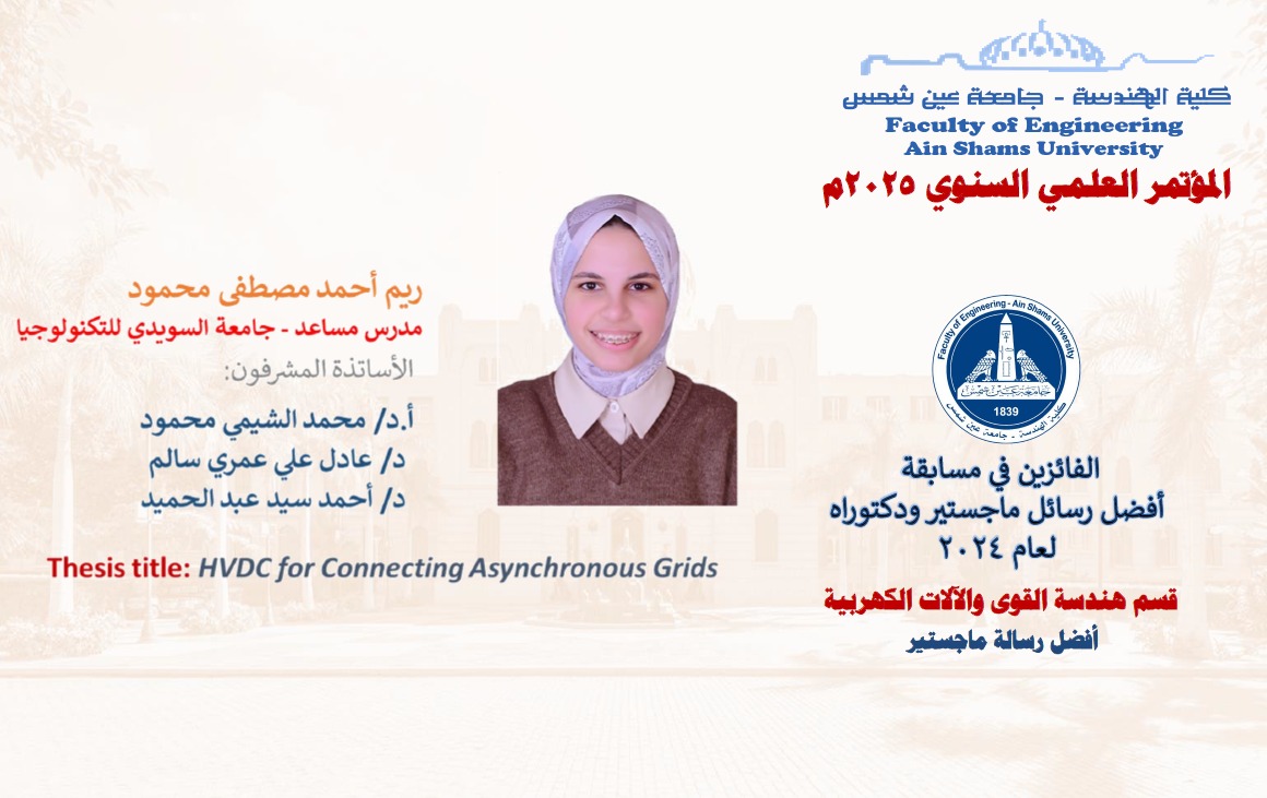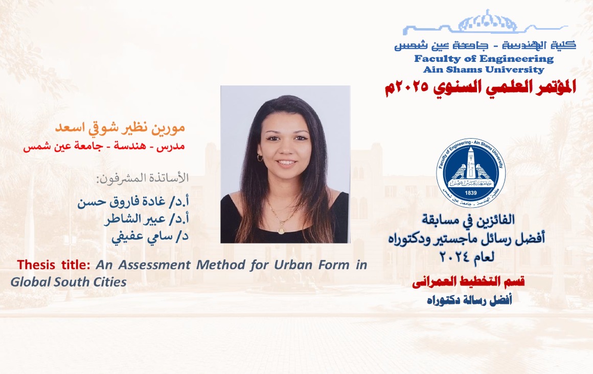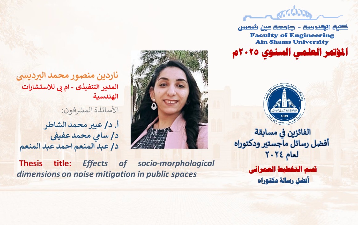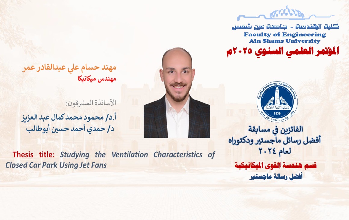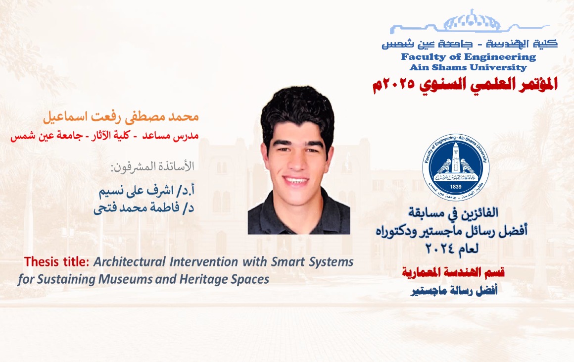 في أجواء من الاعتزاز والفخر شهدت كلية الهندسة – جامعة عين شمس تكريم الفائزين في مسابقة أفضل رسائل علمية (ماجستير – دكتوراه) للعام الجامعي 2023-2024 ، وذلك ضمن فعاليات المؤتمر العلمي السنوي للكلية.