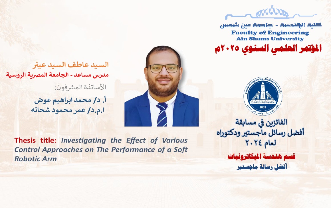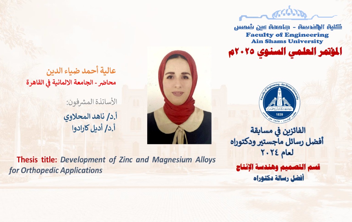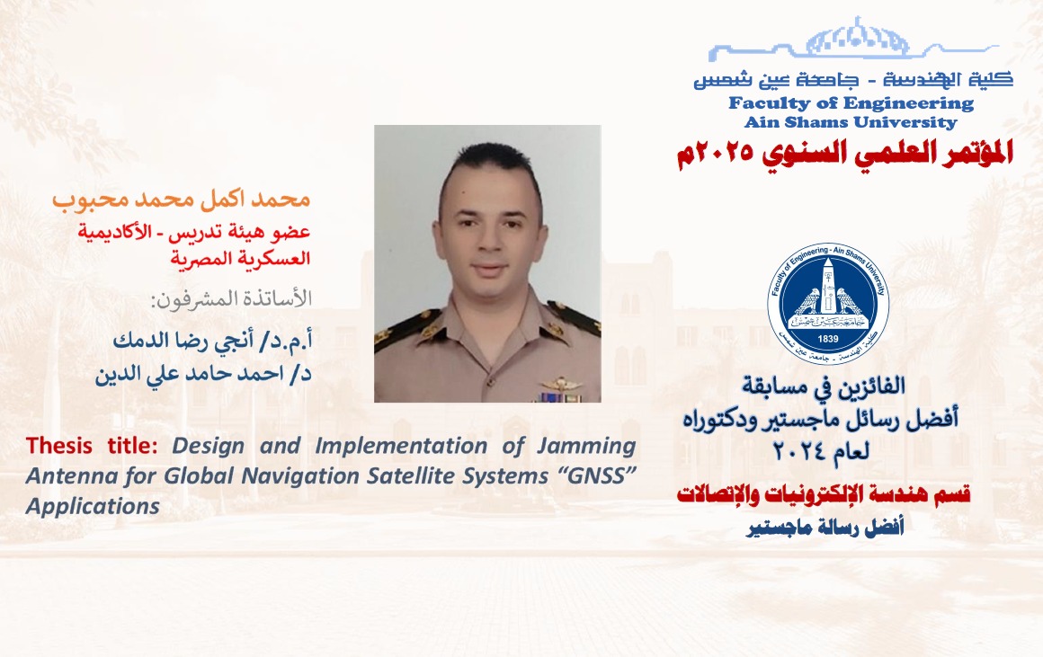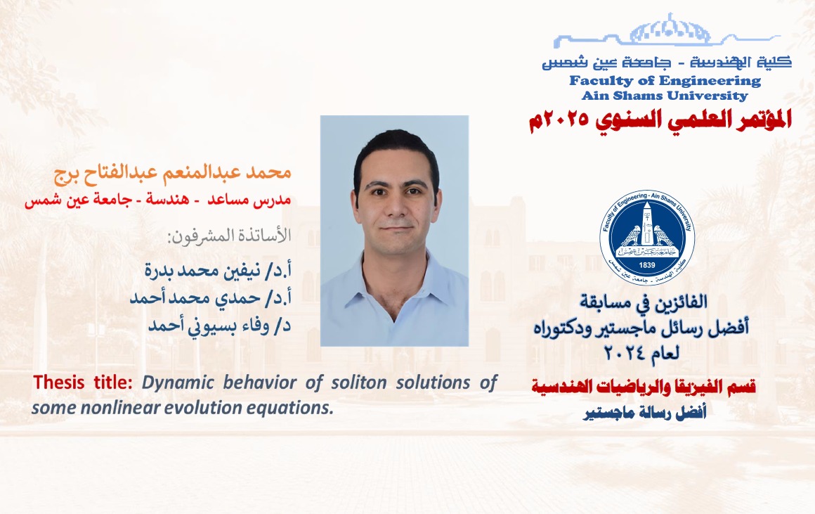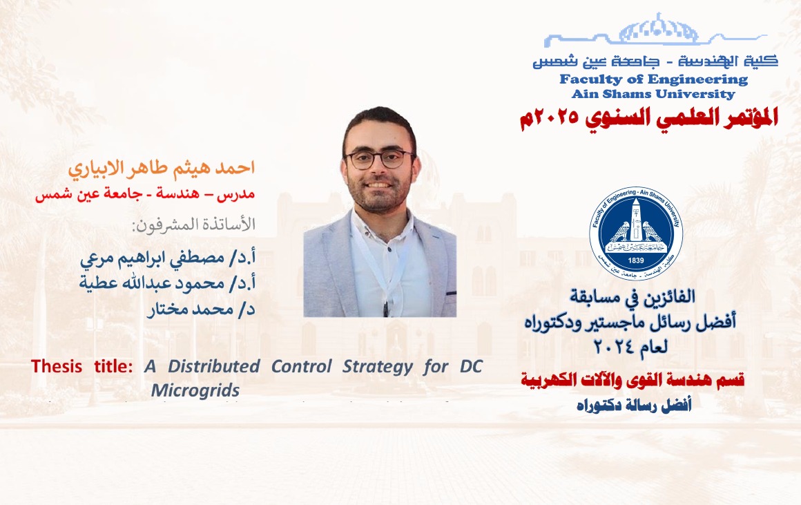في أجواء من الاعتزاز والفخر شهدت كلية الهندسة – جامعة عين شمس تكريم الفائزين في مسابقة أفضل رسائل علمية (ماجستير – دكتوراه) للعام الجامعي 2023-2024 ، وذلك ضمن فعاليات المؤتمر العلمي السنوي للكلية.