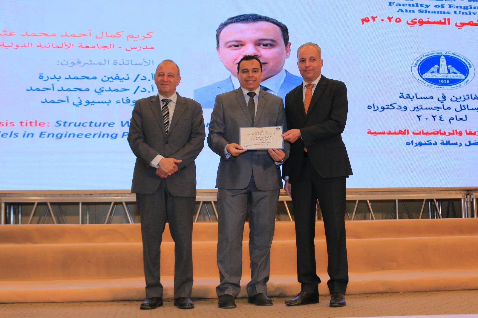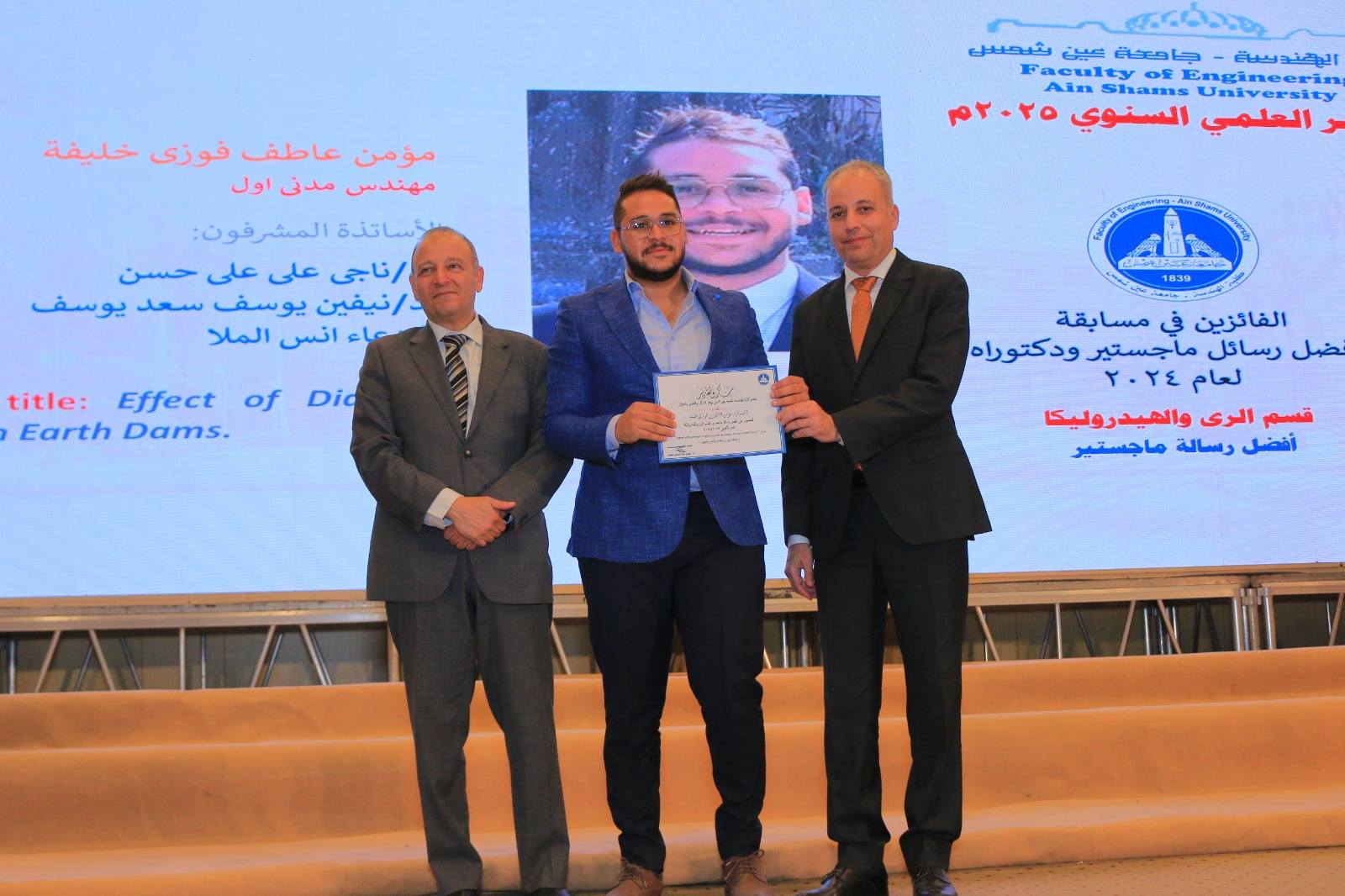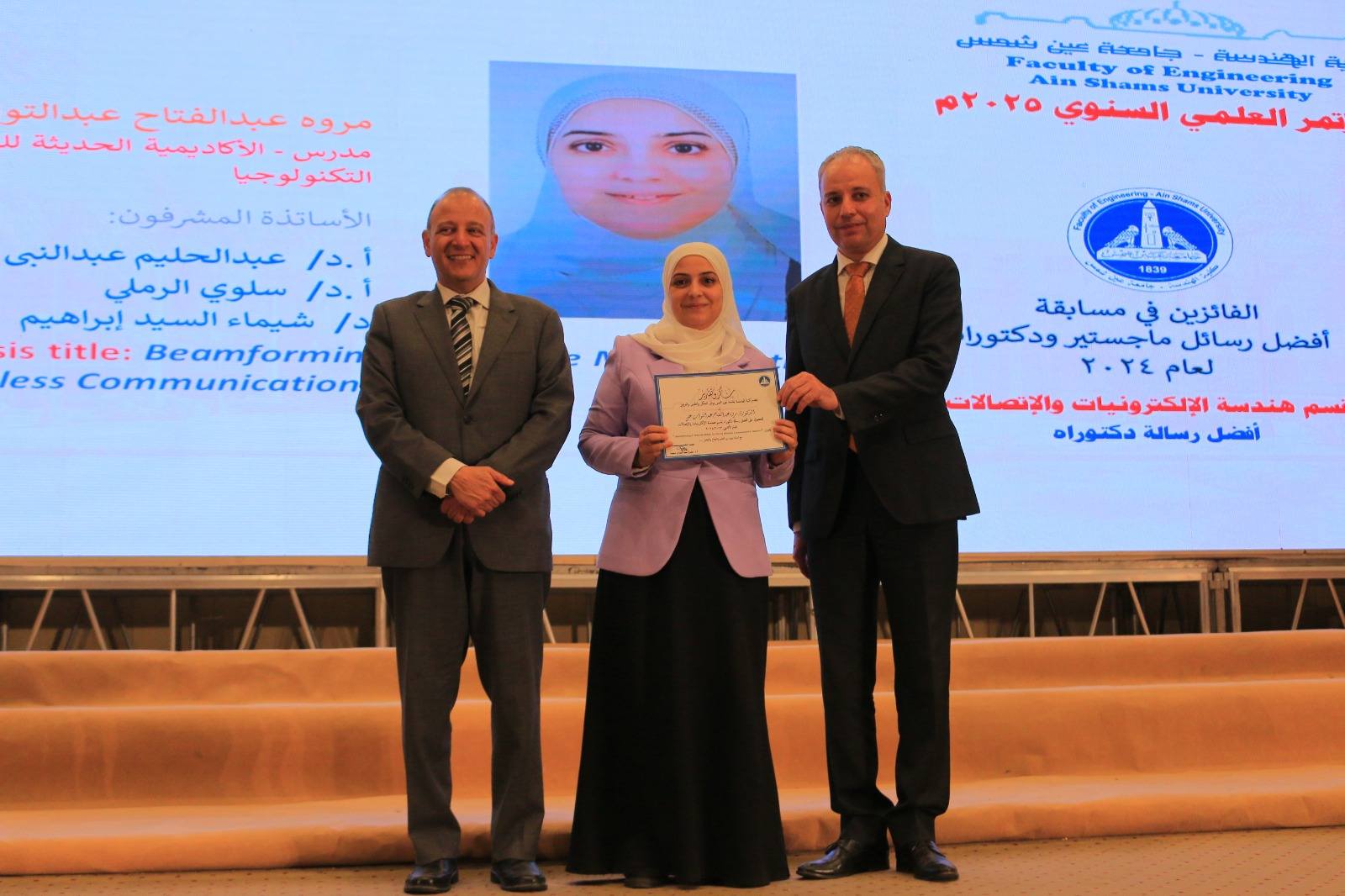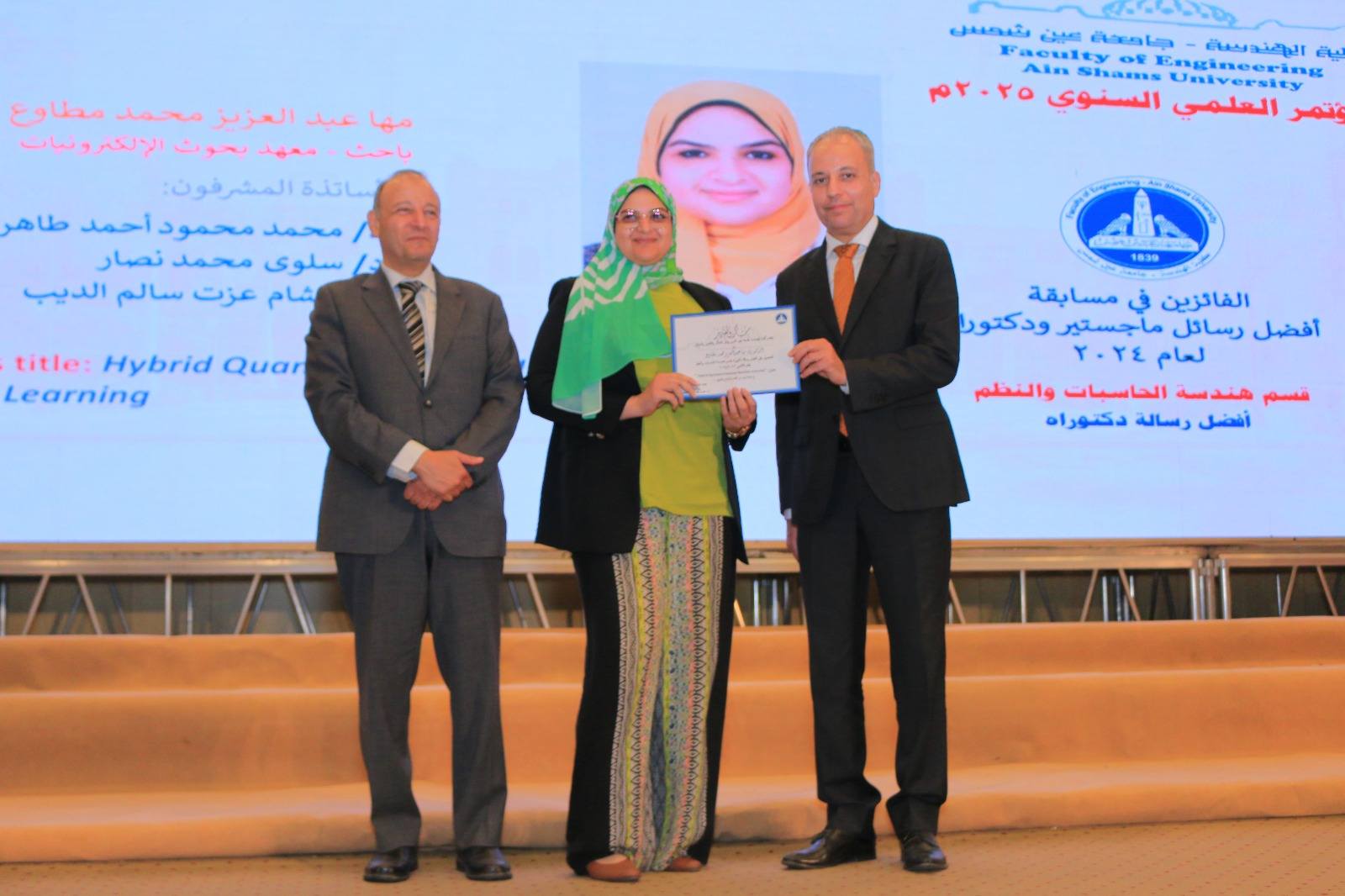 تكريم الفائزين بمسابقة أفضل رسالة علمية للعام الجامعي 2023-2024 خلال فعاليات المؤتمر العلمي السنوي بكلية الهندسة – جامعة عين شمس.