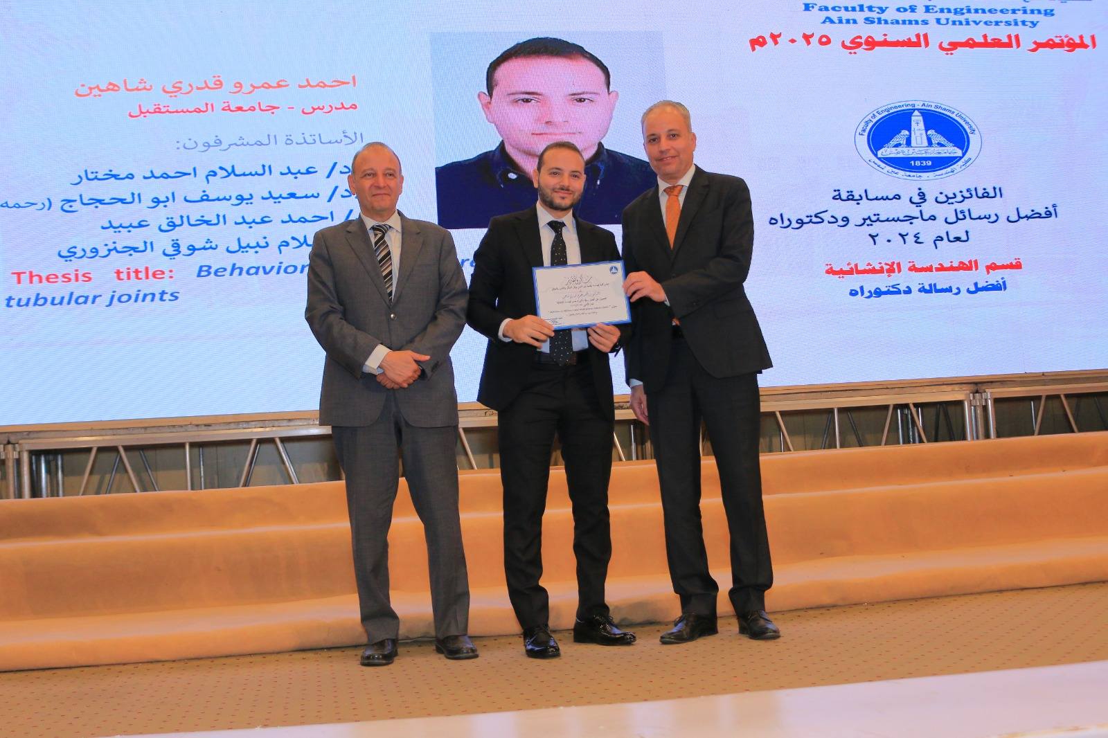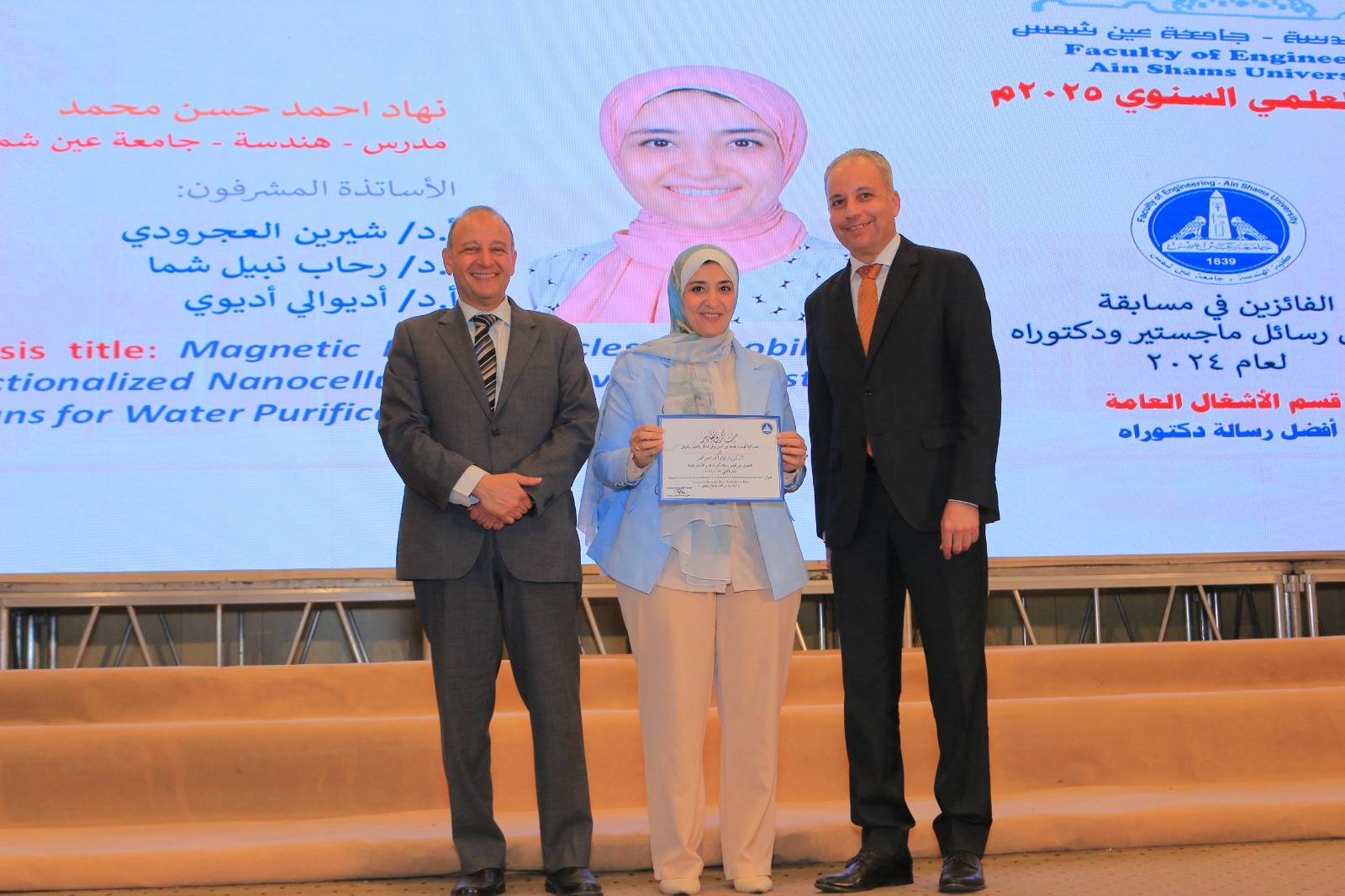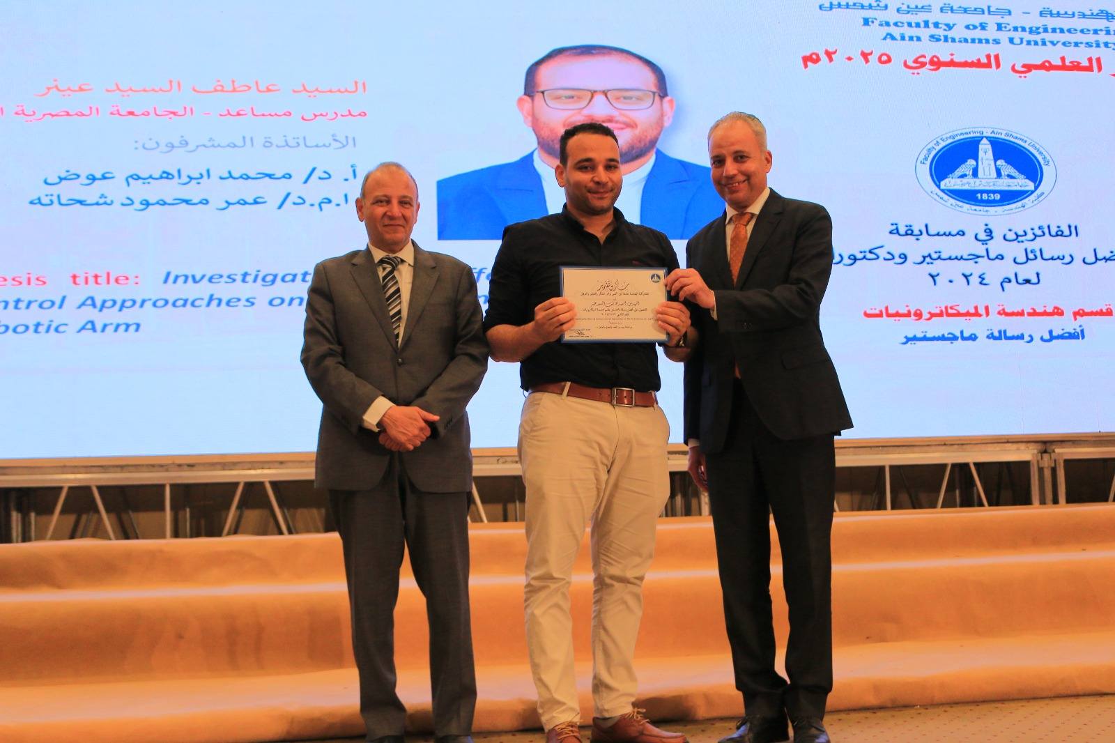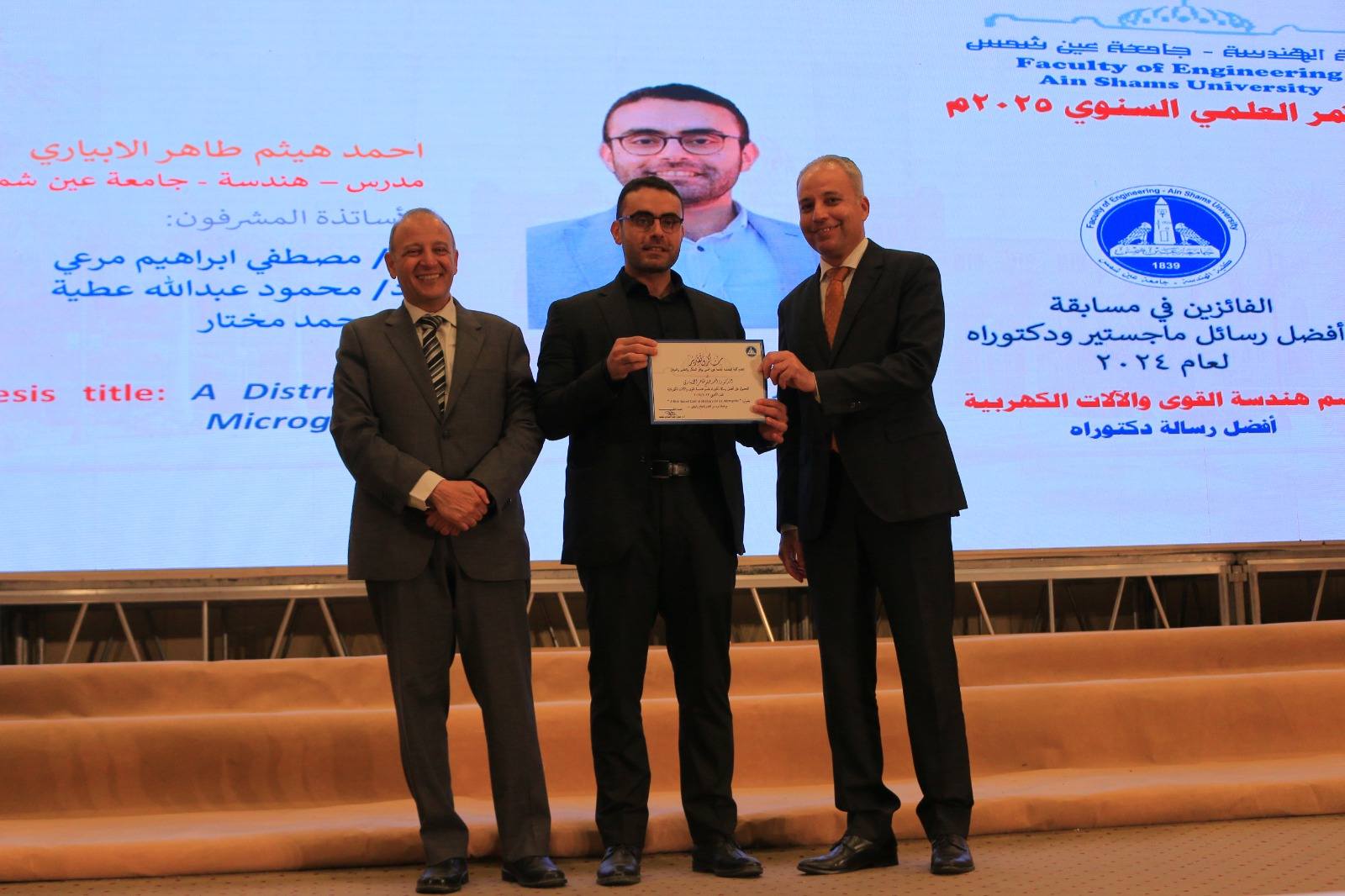 تكريم الفائزين بمسابقة أفضل رسالة علمية للعام الجامعي 2023-2024 خلال فعاليات المؤتمر العلمي السنوي بكلية الهندسة – جامعة عين شمس.