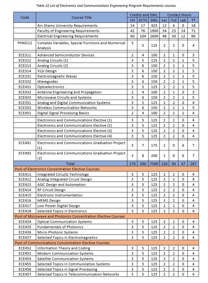 - Demonstrate additional abilities related to the field of the concentration within Electronics and Communications Engineering as listed below.