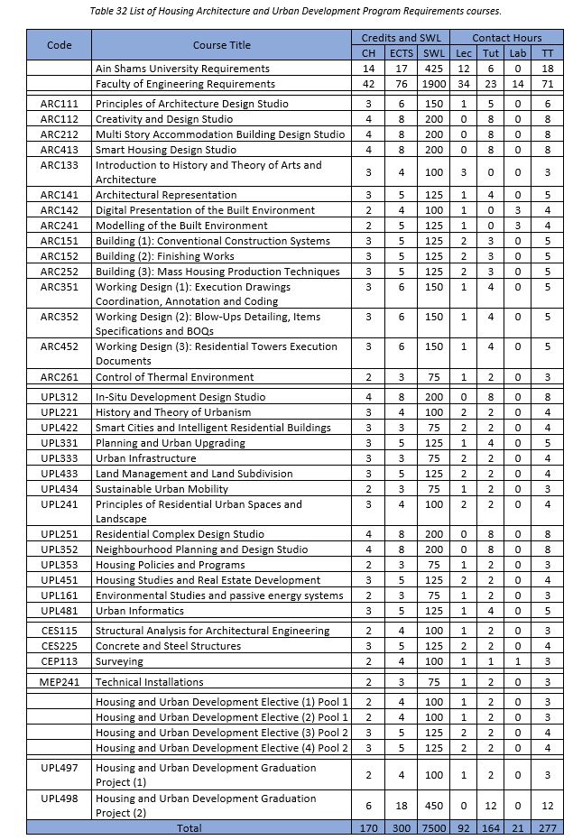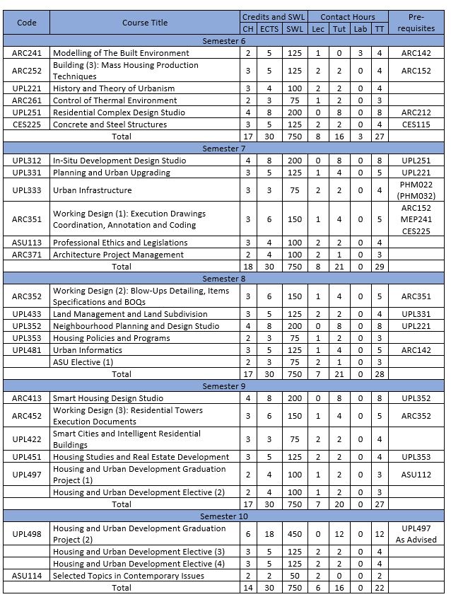Globally, over 50% of the population lives in urban areas; and moving towards urbanization is accelerating. As urban populations grow, the housing gap will widen, exacerbating inequality and threatening the traditional view of cities as reliable drivers of economic growth. Though providing affordable, adequate and secure housing is a basic human need, housing provision persists a key urban challenge worldwide. The Housing Architecture and Urban Development (HAUD) program aims at preparing architects and urban planners specialized in housing and the built environment design for sustainable urban development. Graduates go on to obtain professional degrees in architectural engineering with specialization in housing and urban development...