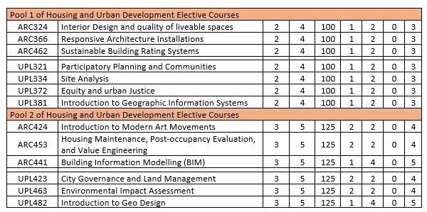 In addition to the competences for all Engineering Programs (A-Level), the Housing Architecture and Urban Development Program graduate must be able to (D-Level):