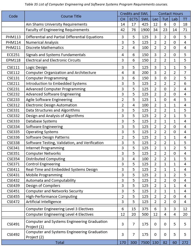 The systematic development of high-quality software systems that are concerned with quality, cost, time, and a number of other requirements requires well-qualified engineers in this field. Targeted at software engineering apply engineering principles in each phase of software development life-cycle; requirements analysis, design, validation, implementation, testing, documentation, and management. Software engineering is one of the most promising fields in engineering and is considered an important milestone in the ever-growing information technology sector. Therefore, the main objective of this program is to graduate highly qualified engineers in the field of computer engineering and software industry that have the qualification requirements in the field of computer engineering and software engineering. This program focuses on modern methodologies in software industry that represents, without a doubt, an important sector of the national economy. Students study in this program a variety of courses that complement each other to produce a world-class qualified engineer