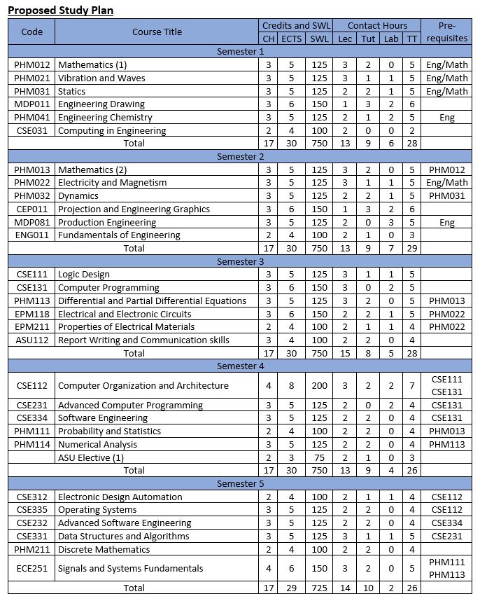 In order to get a Bachelor of Science Degree in this program, and to satisfy the Program Competences, the following set of courses need to be completed.