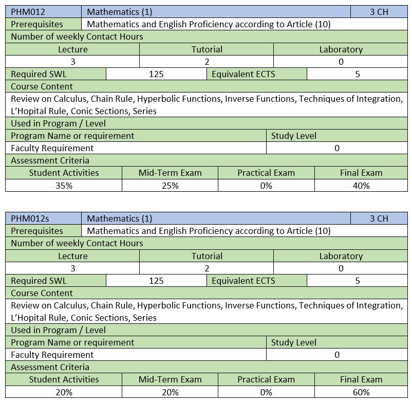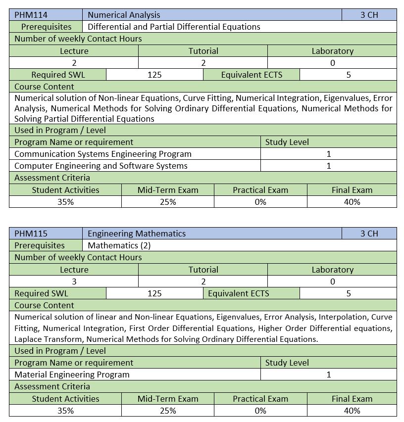 برامج مرحلة البكالوريوس التخصصية SCHEP