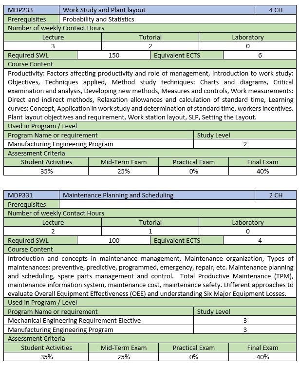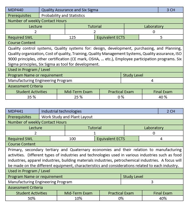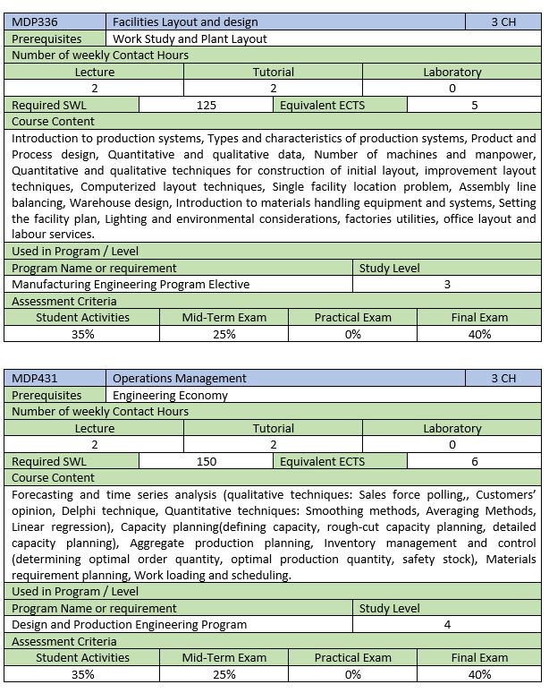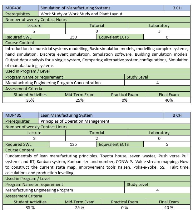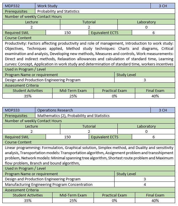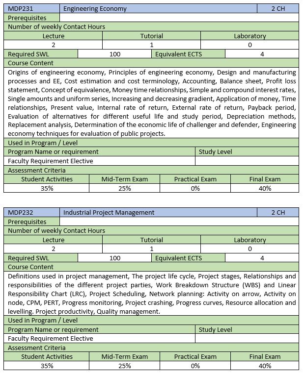 E2.3 Industrial Engineering Courses