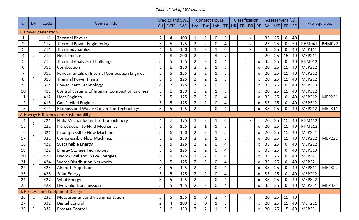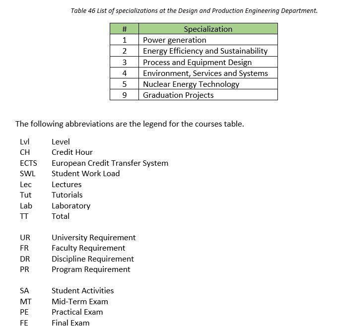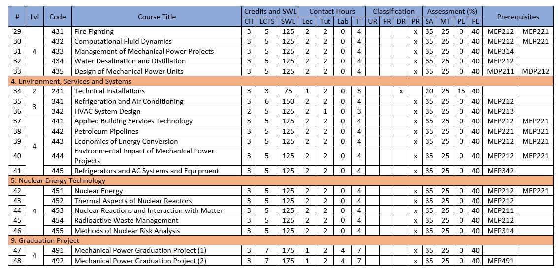 The Mechanical Power Engineering Department is responsible for teaching courses that serve the following programs: