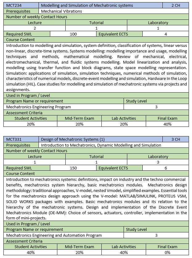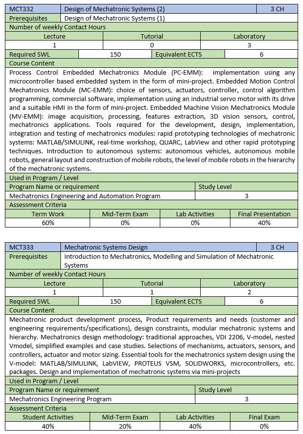 E5.3 Mechatronics Design and Manufacturing Courses