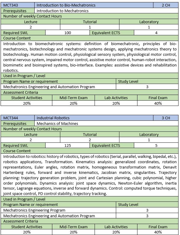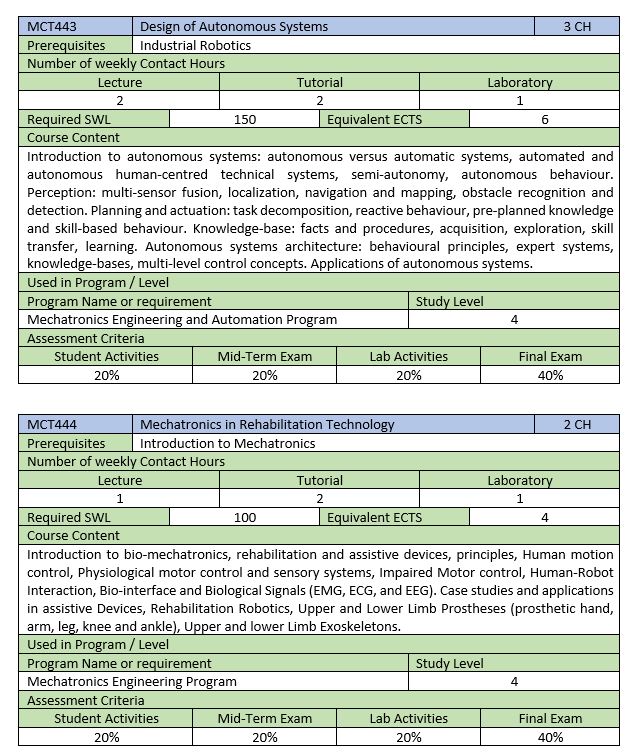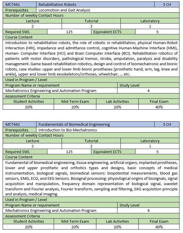 برامج مرحلة البكالوريوس التخصصية SCHEP