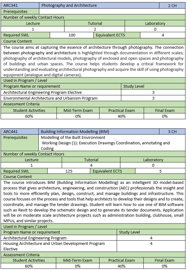 برامج مرحلة البكالوريوس التخصصية SCHEP