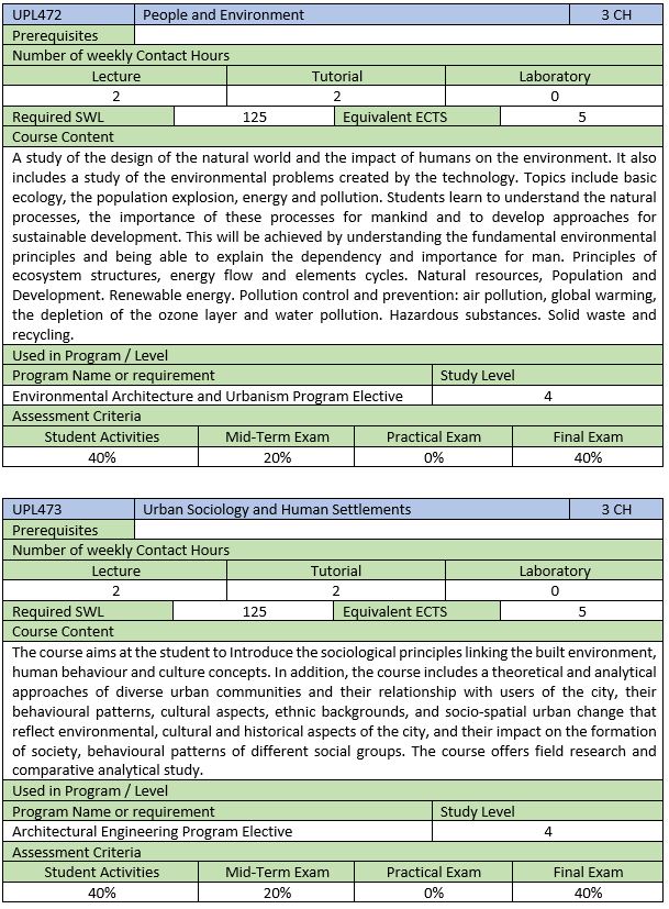 برامج مرحلة البكالوريوس التخصصية SCHEP