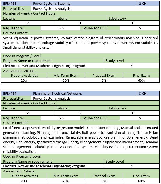 E8.3 Electrical Power Systems Courses
