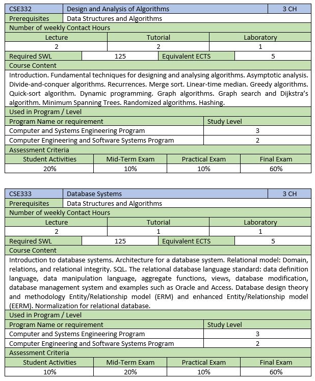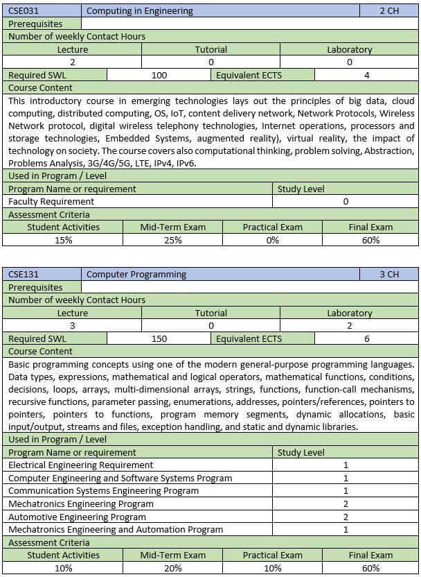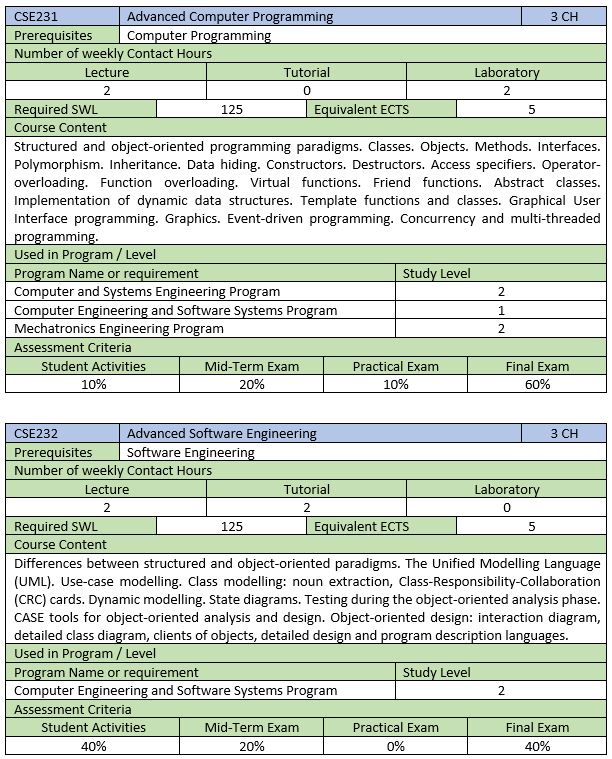 برامج مرحلة البكالوريوس التخصصية SCHEP