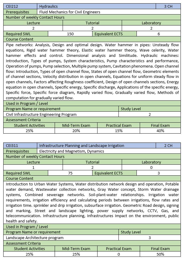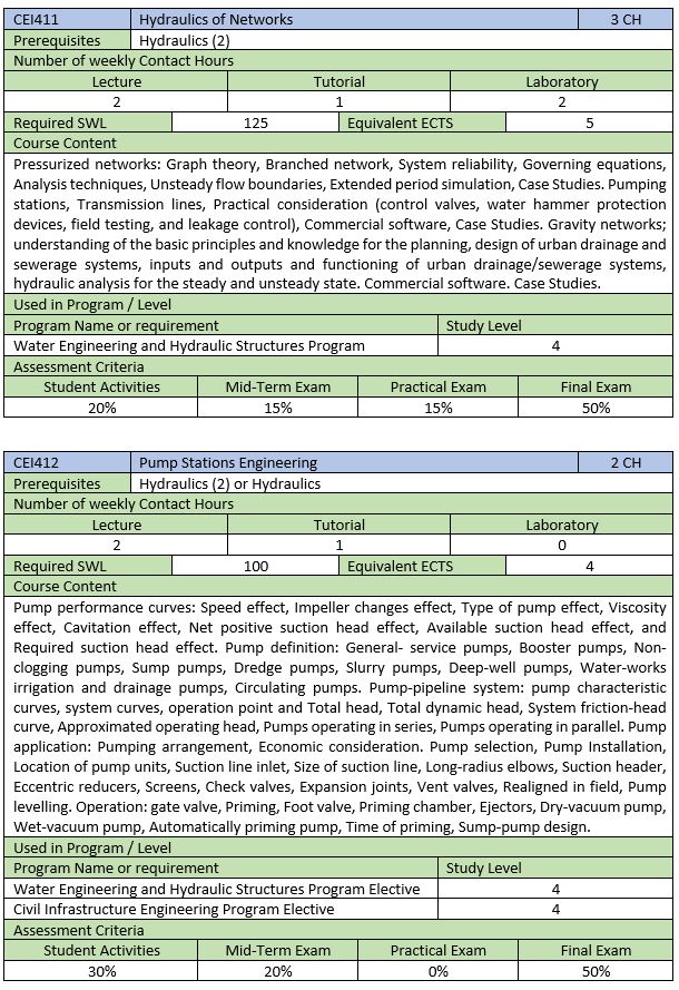 برامج مرحلة البكالوريوس التخصصية SCHEP