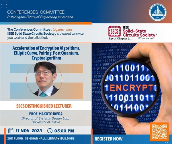 The Conferences Committee, together with the IEEE Solid-State Circuits Society – Egypt Chapter, is pleased to invite you to an insightful talk by Prof. Makoto Ikeda, SSCS Distinguished Lecturer and Director of the Systems Design Lab, University of Tokyo.