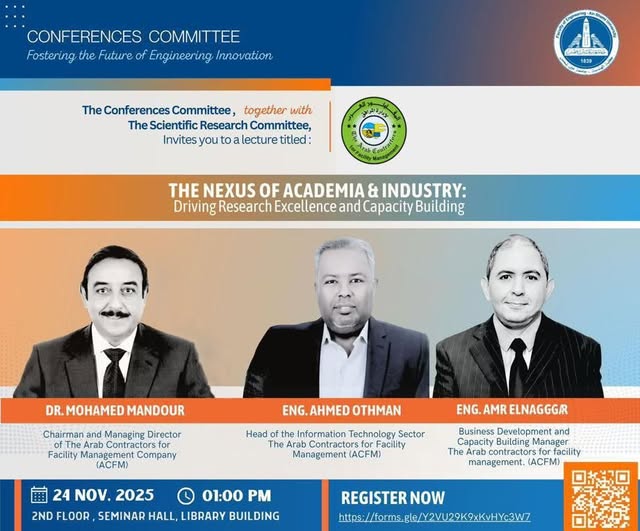 The Conferences Committee, together with the Scientific Research Committee, is pleased to invite you to a distinguished lecture titled “The Nexus of Academia & Industry: Driving Research Excellence and Capacity Building.”