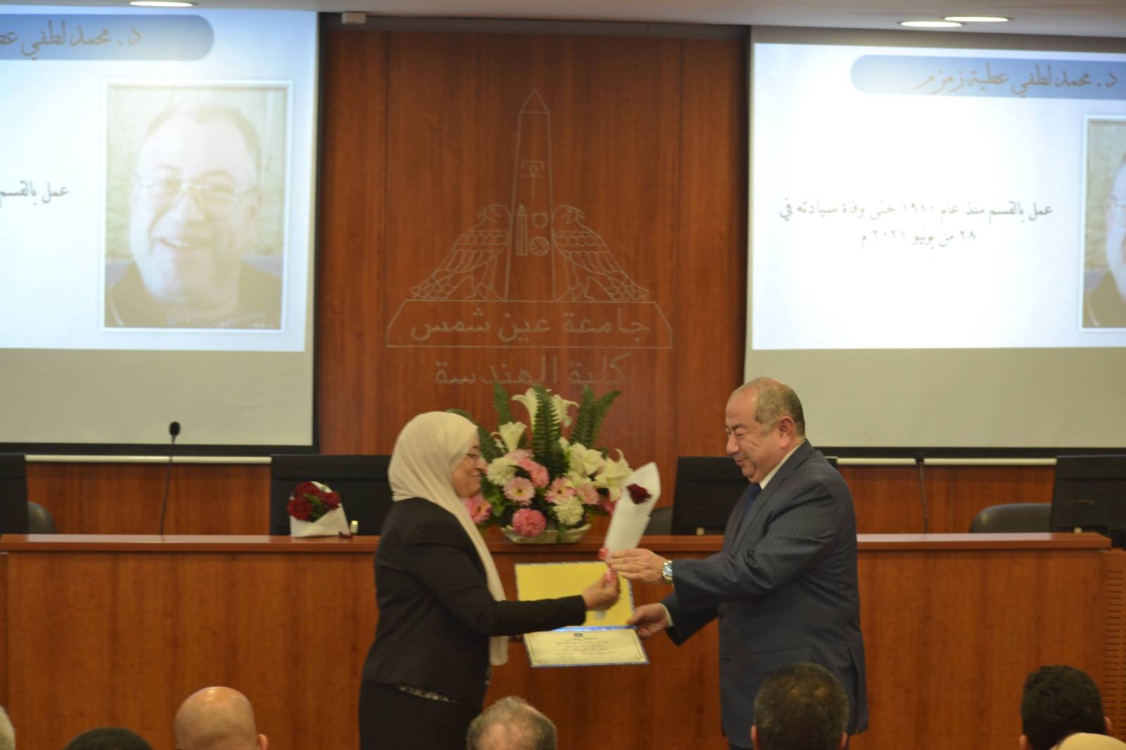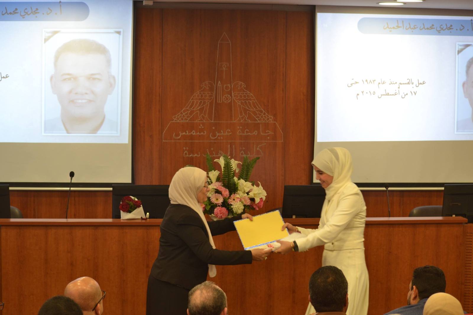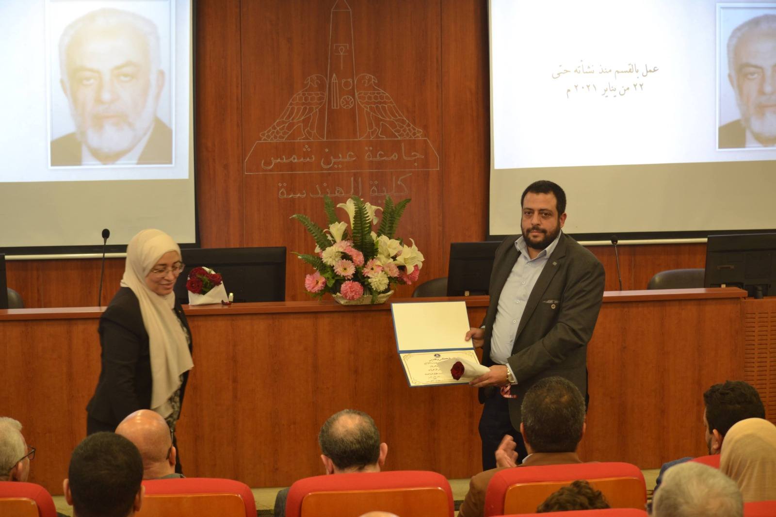 وأقيمت الفعالية بقاعة السيمينار بمبنى المكتبة المركزية بالكلية ، وبحضور بعض أسر الأساتذة الراحلين، وعدد من أعضاء هيئة التدريس والهيئة المعاونة بالقسم، وسط أجواء إنسانية اتسمت بالمحبة والتقدير المتبادل.