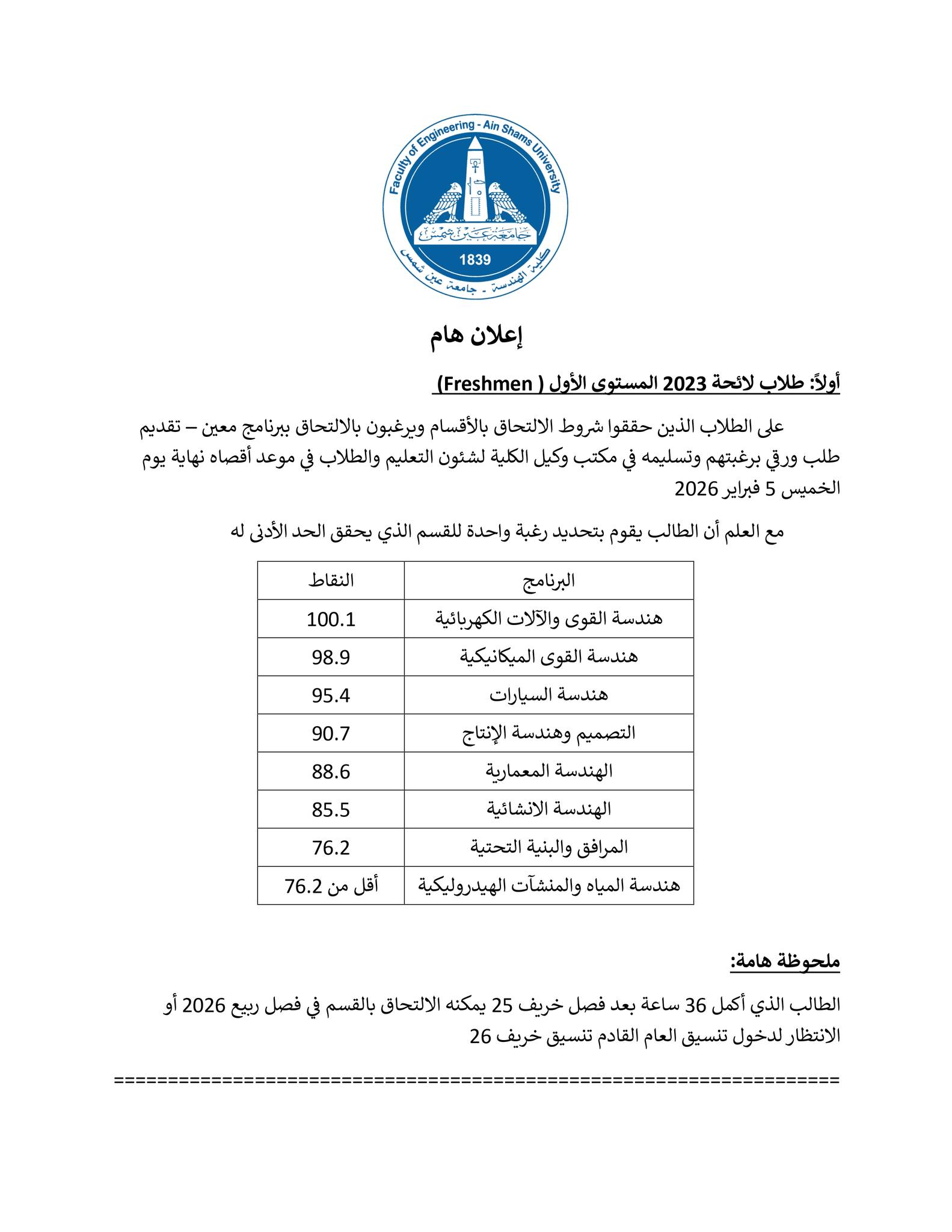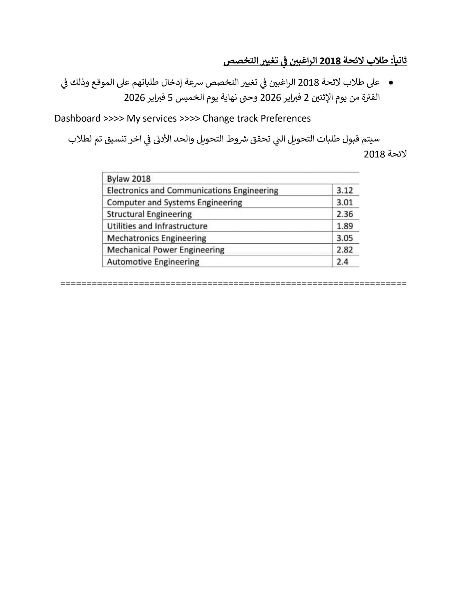التحويلات والالتحاق بالبرامج (ربيع 2026)