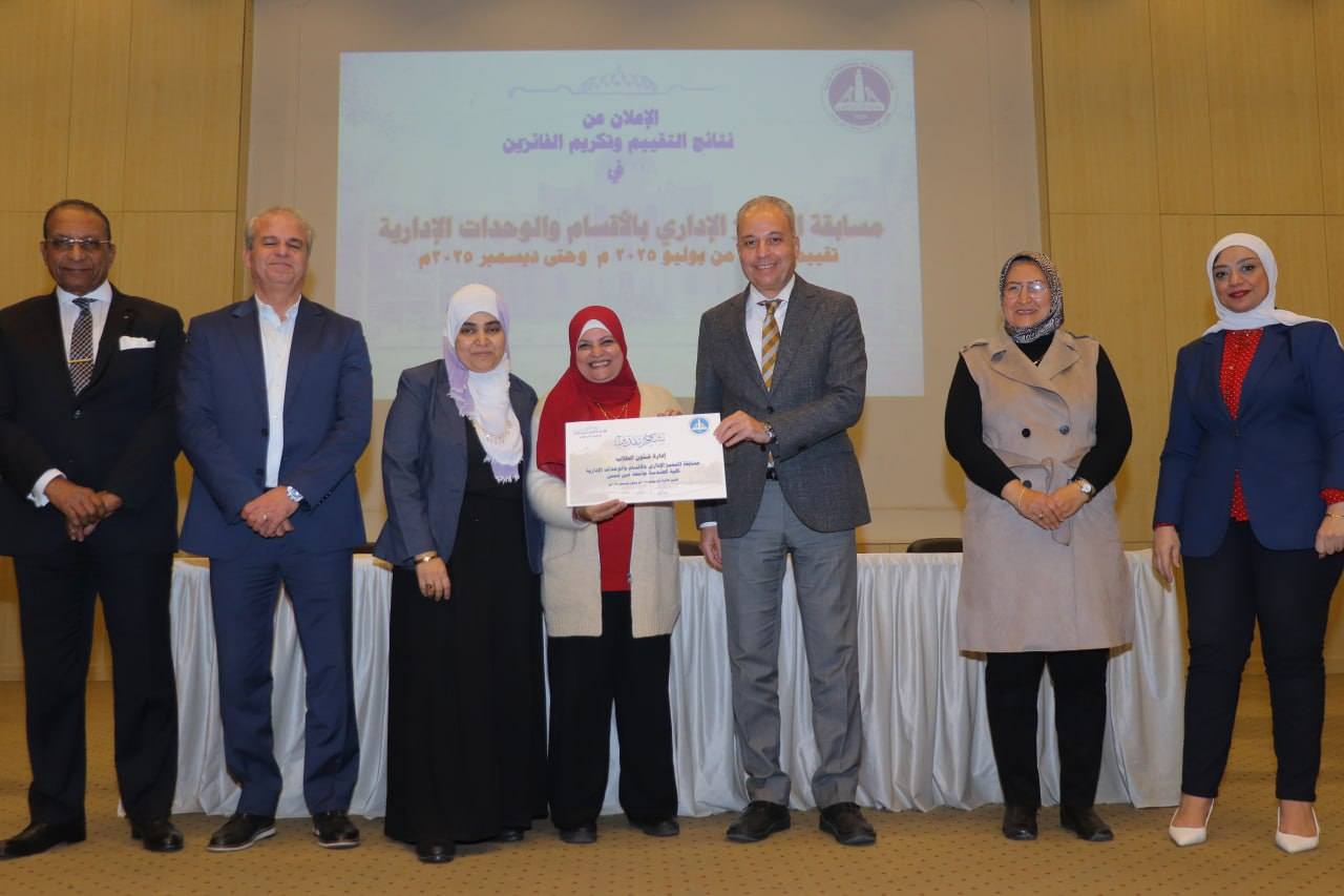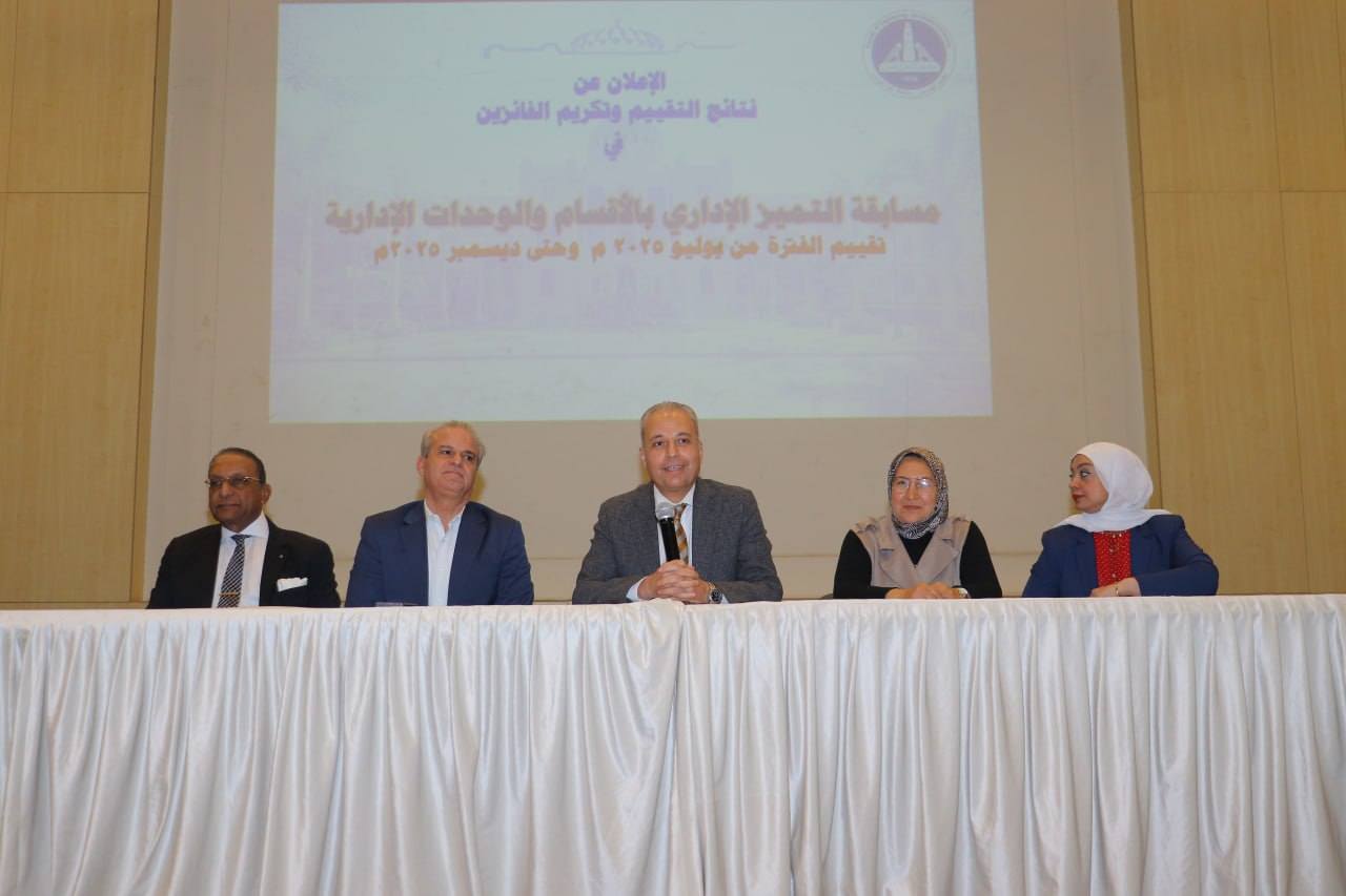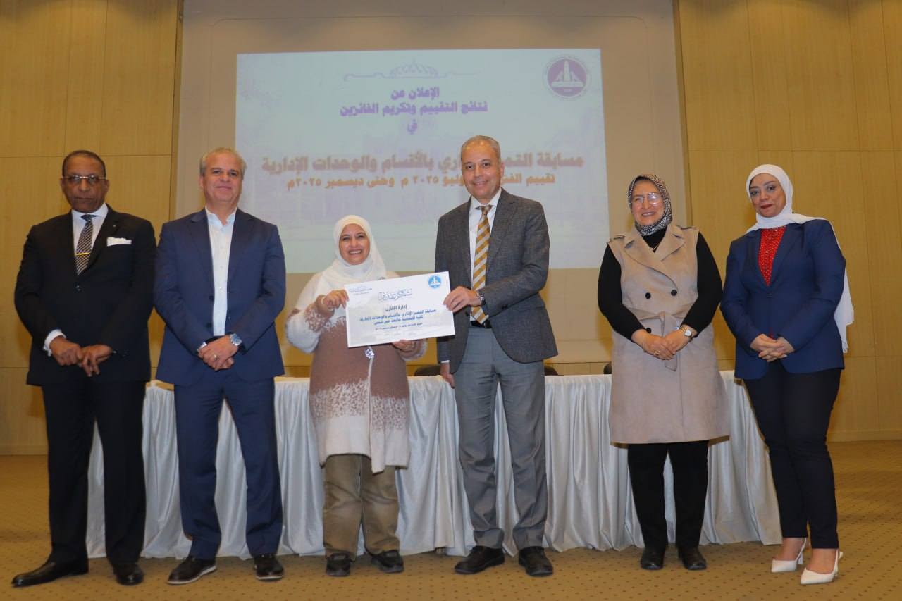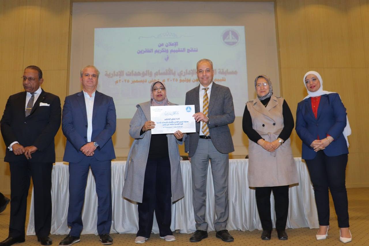 وتم خلال الإحتفالية إعلان نتائج تقييم الإدارات من خلال مسابقة التميز الإدارى بالأقسام والوحدات الإدارية خلال الفترة من بداية يوليو 2025م وحتى نهاية ديسمبر 2025م وذلك بقاعة الإحتفالات الكبرى بالكلية.