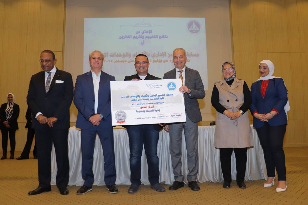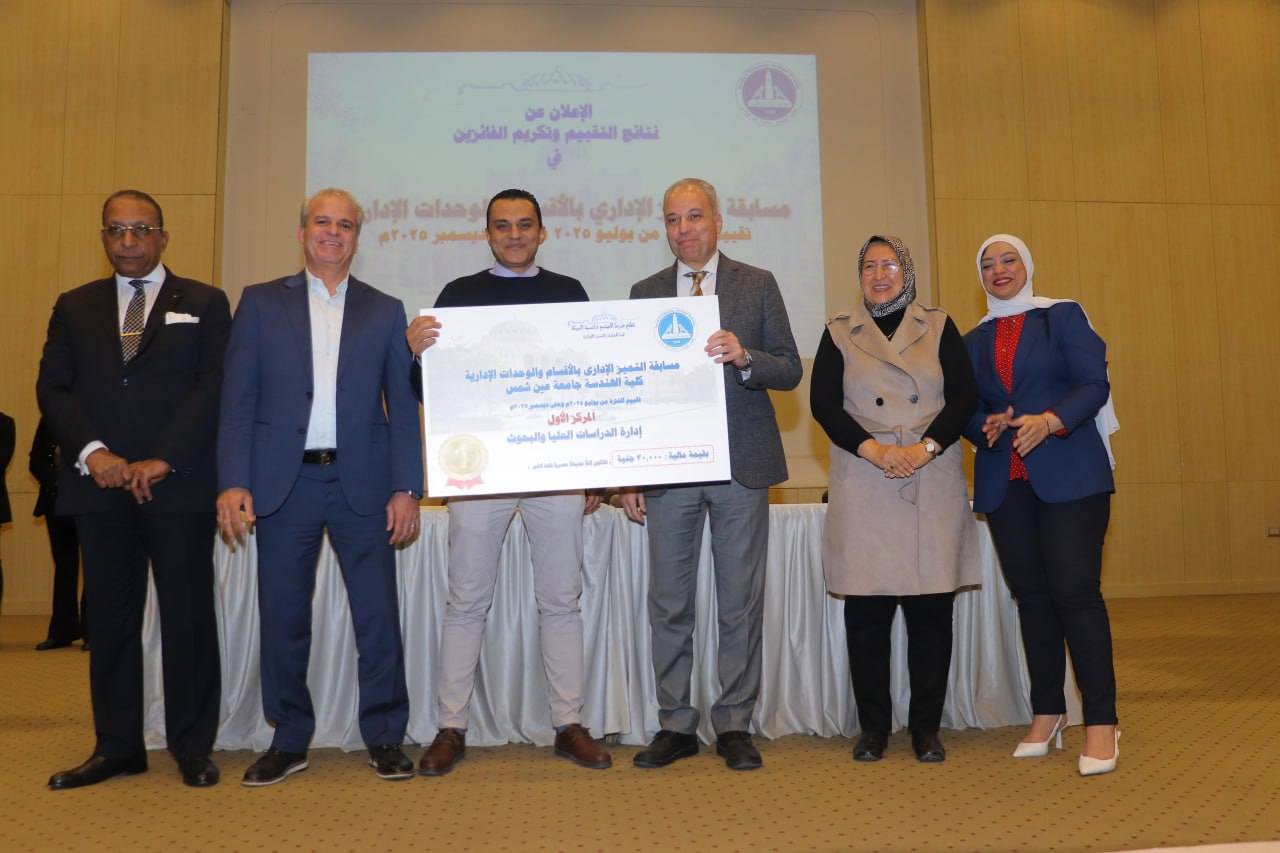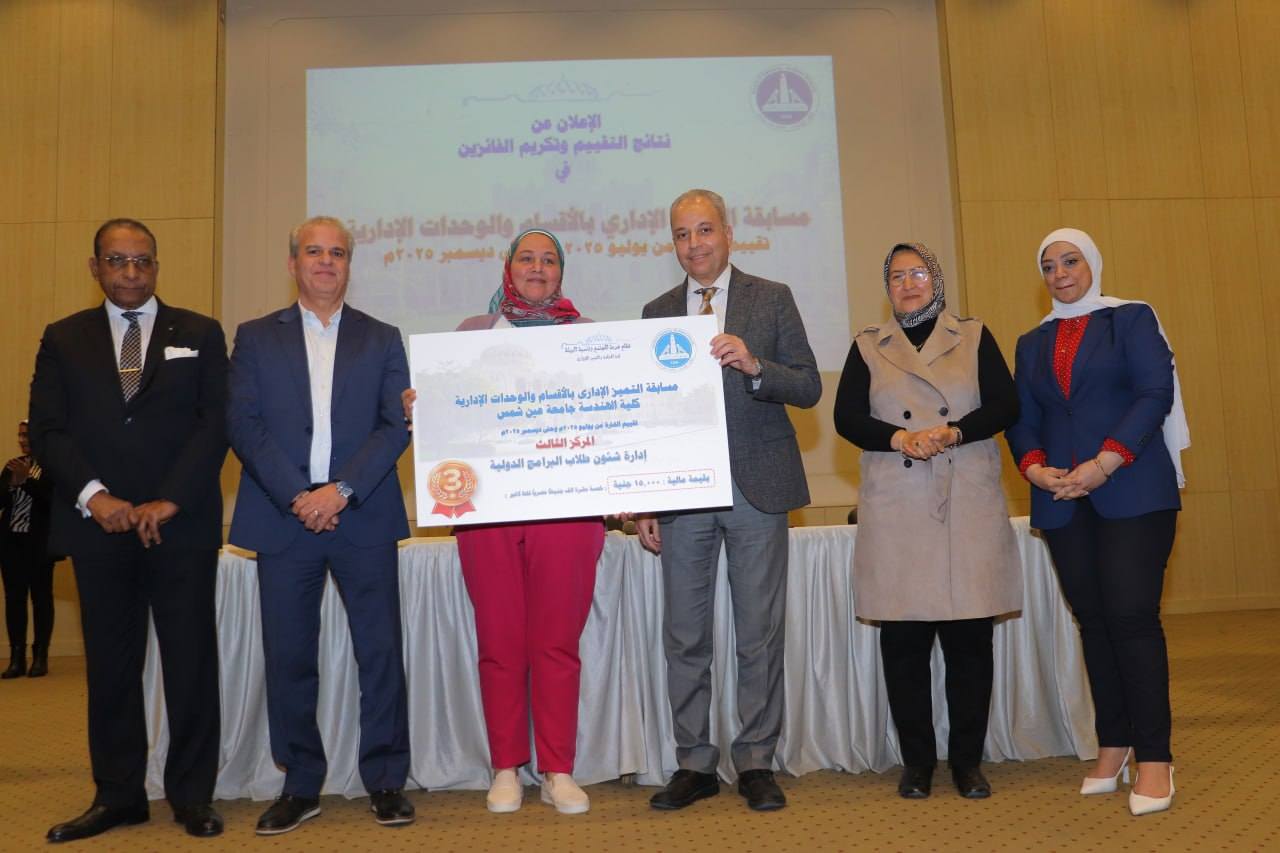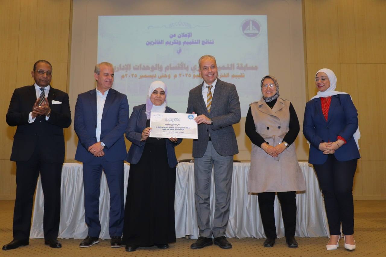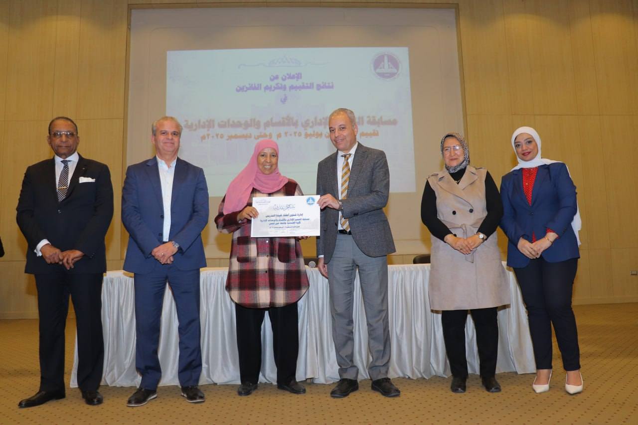 وتم خلال الإحتفالية إعلان نتائج تقييم الإدارات من خلال مسابقة التميز الإدارى بالأقسام والوحدات الإدارية خلال الفترة من بداية يوليو 2025م وحتى نهاية ديسمبر 2025م وذلك بقاعة الإحتفالات الكبرى بالكلية.