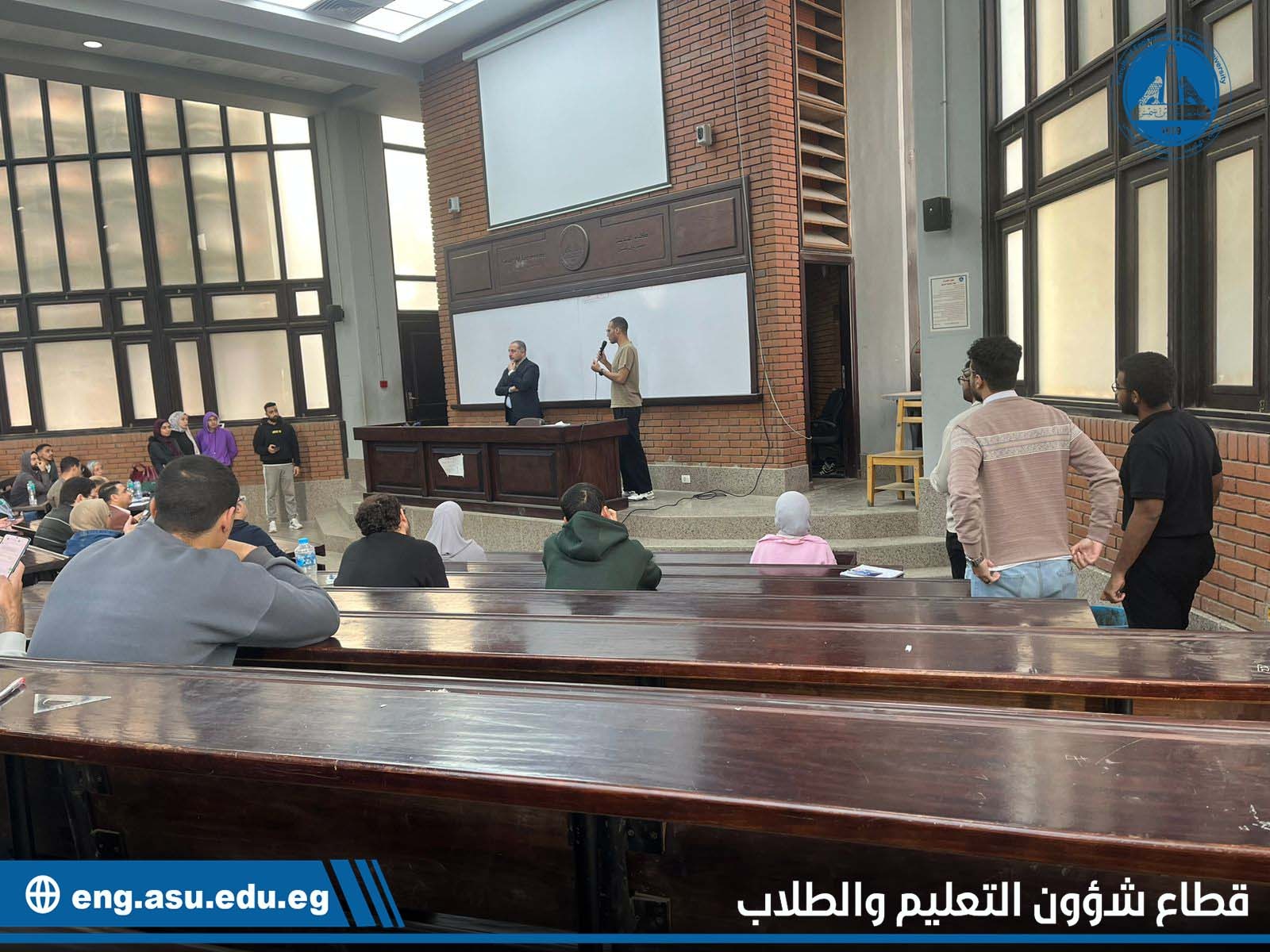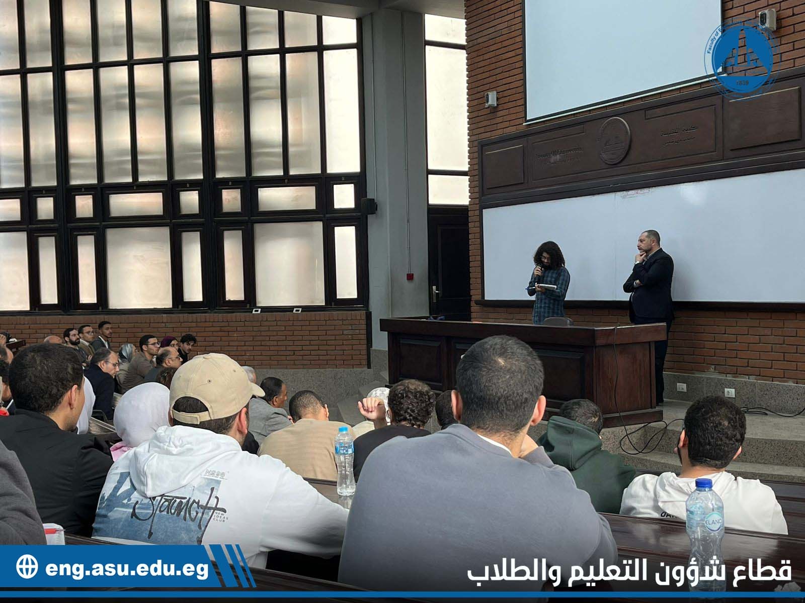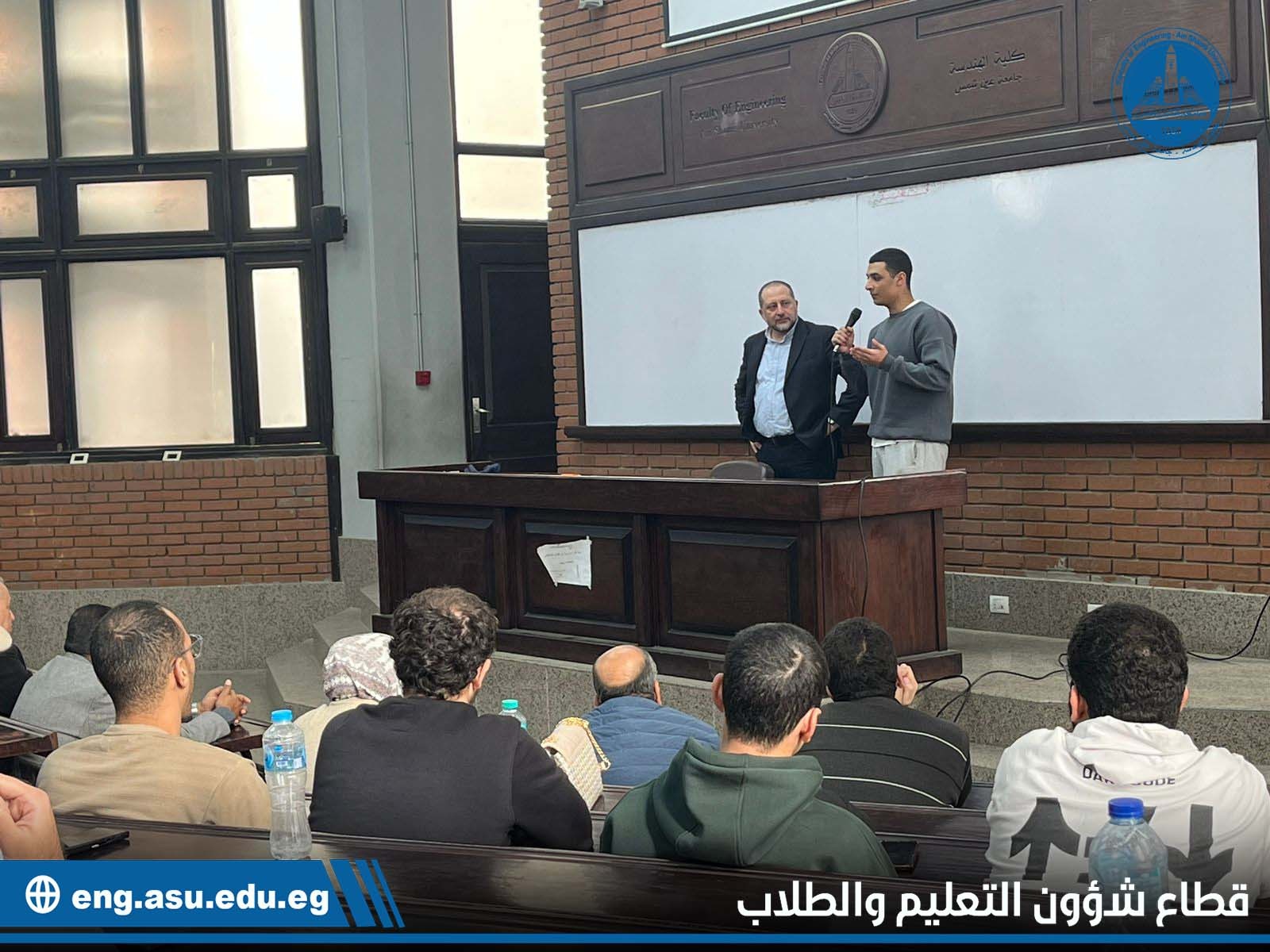 في إطار حرص كلية الهندسة على تعزيز قنوات التواصل مع الطلاب، وتحت رعاية العميد الأستاذ الدكتور عمرو شعت، عميد الكلية، عُقد لقاء موسّع يوم الثلاثاء الموافق 10-1-2026 قام الأستاذ الدكتور محمد عبد العزيز، وكيل الكلية لشؤون التعليم والطلاب، والأستاذ الدكتور محمد عبد المعطي، مدير البرامج التخصصية، والأستاذ الدكتور وليد زين نائب مدير البرامج التخصصية، والدكتور نبيل حامد، منسق التدريب الميداني، والدكتور أحمد عبد الحميد، منسق الأنشطة الطلابية، ومنسقي البرامج التخصصية والدولية، ومنسقي الإرشاد الأكاديمي.