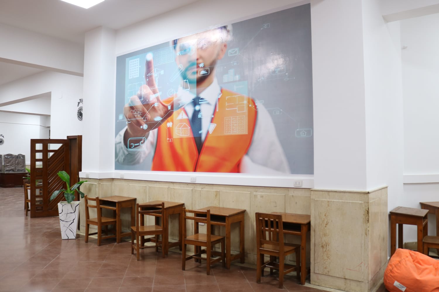 كما تم تزويد المساحة بكافة التجهيزات والخدمات اللوجستية اللازمة لضمان بيئة عمل مريحة ومحفزة على الإبداع، بما يسهم في دعم الأنشطة الطلابية والمشروعات الابتكارية.