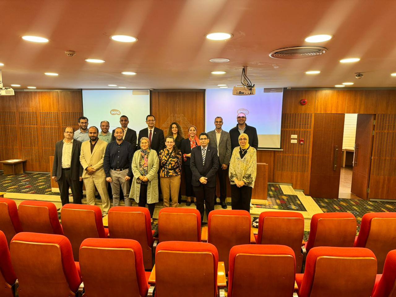 تحت رعاية أ.د.محمد ضياء زين العابدين وتنظيم واشراف قطاع العلاقات الدولية والتعاون الأكاديمي برئاسة أ.د. شيرويت الاحمدي و مكتب المنح والمشروعات برئاسة أ.د. هدى سوسة والذي يقوم بادارة برنامج الاتحاد الاوروبي للتبادل “Erasmus+” ممثلا في د. نهى الرافعي، منسق جامعة عين شمس للبرنامج ونائب مدير ادارة المنح والمشروعات، ود. عزيز شاكر نائب منسق البرنامج ورئيس قسم متابعة المشروعات بمكتب المنح والمشروعات بالجامعة وبالتنسيق مع مكتب المنح والتمويل بكلية الهندسة جامعة عين شمس استقبلت الكلية امس الثلاثاء ١١ نوفمبر ٢٠٢٥ وفد جامعة برلين التقنية المكون من Ms.lna Hohenhaus & Ms.Nelly Salzmann وذلك على هامش زيارتهم لجامعة عين شمس لتعزيز التبادل العلمى والأكاديمي وقد استقبل الوفد السيد الأستاذ الدكتور عمرو شعت عميد الكلية و أ.د. مروة خليفة وكيل الكلية للدراسات العليا والبحوث و أ.د. ضياء خليل الأستاذ المتفرغ بقسم هندسة الالكترونيات والاتصالات بالكلية والأستاذ المميز بجامعة شنغهاي الصينية و أ.م.د انجي الدمك مدير مكتب التعاون الدولى بالكلية و أ.م.د سامي عفيفي مدير مركز دعم و تطوير المعلم و منسق التسويق بالكلية و د. عثمان عمر مدير مكتب المنح والتمويل و د. محمد انور نائب مدير مكتب المنح والتمويل بالكلية.